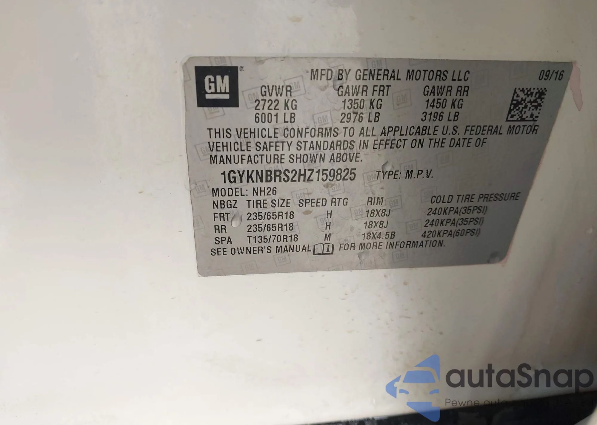 • VIN 1GKKVPED8DJ188852