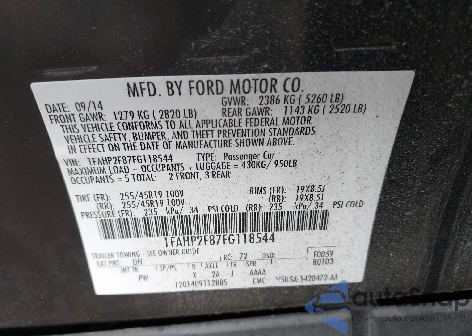 LOT: 43754626 VIN: 1FAHP2F87FG118544