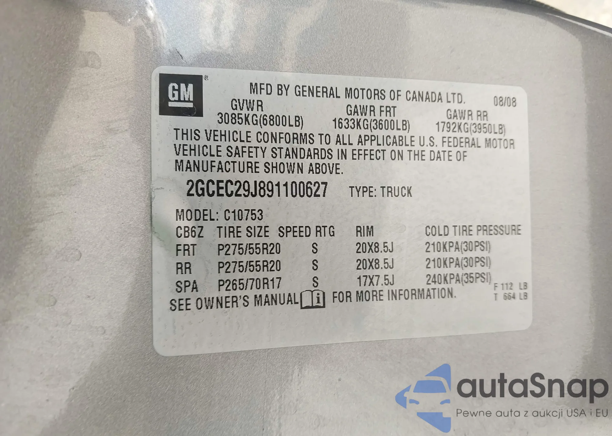 • VIN 2GCEC29J891100627