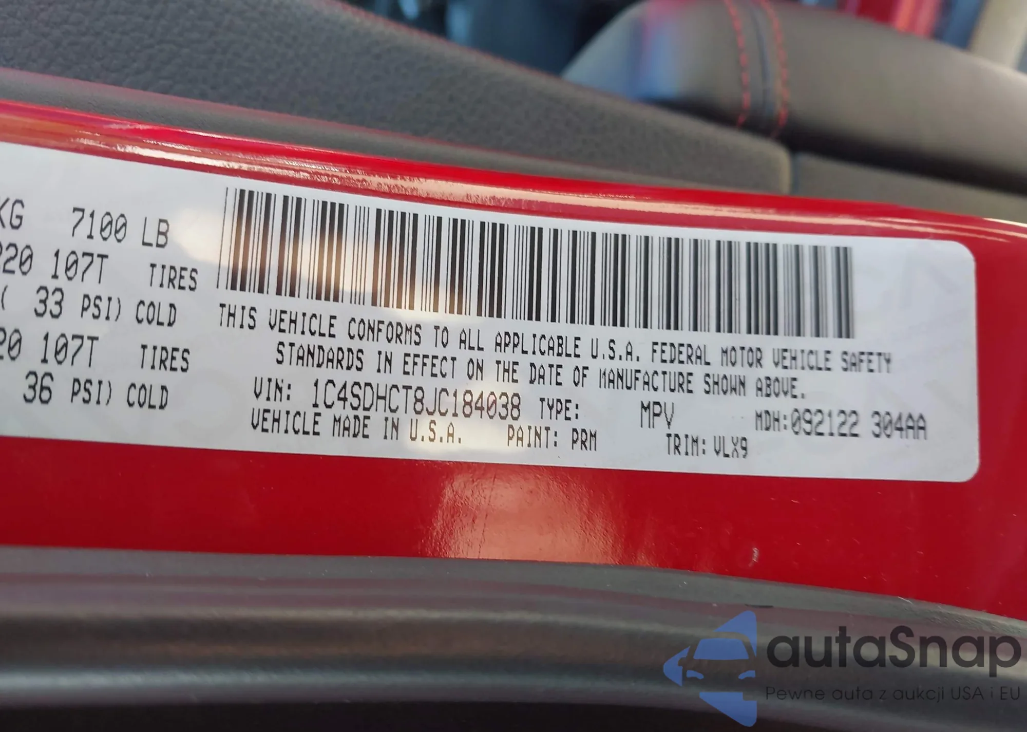 • VIN 1C4SDHCT8JC184038