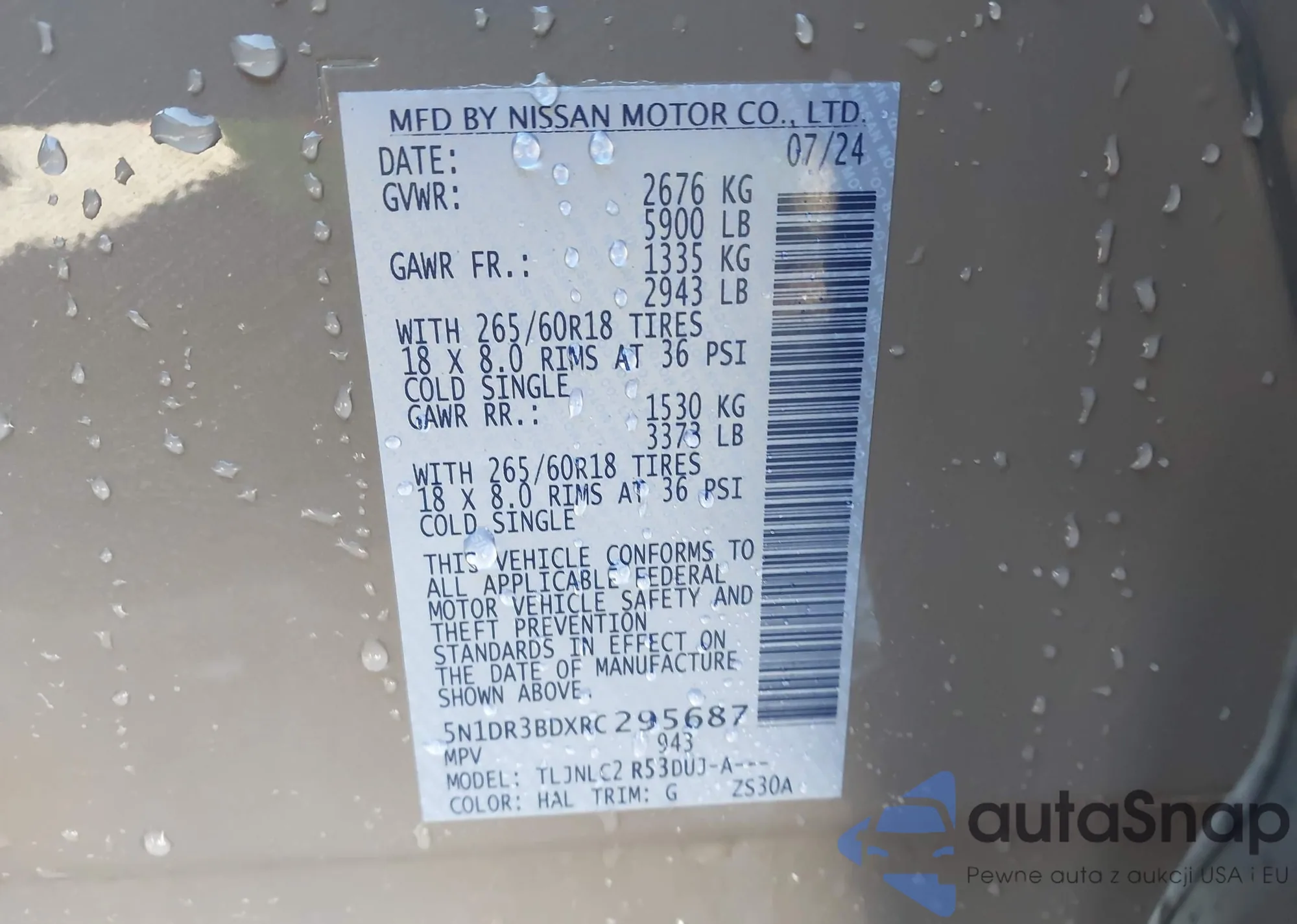 • VIN 5N1DR3BDXRC295687