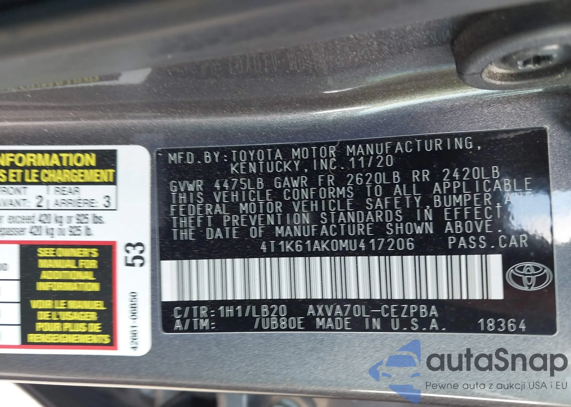 • VIN 4T1K61AK0MU417206