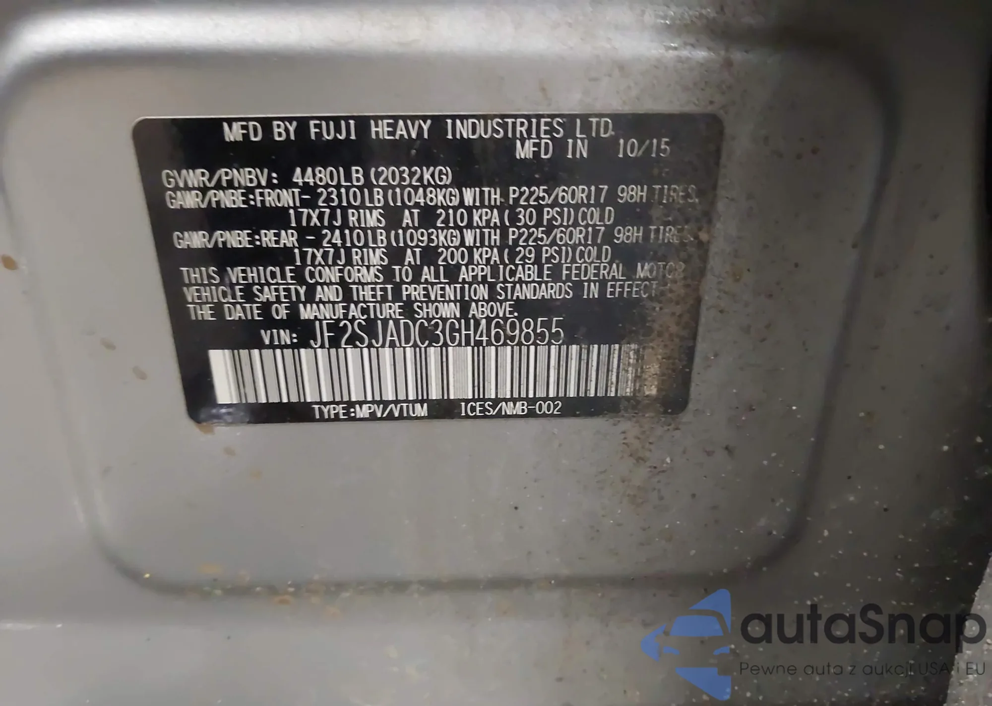 • VIN JF2SJADC3GH469855