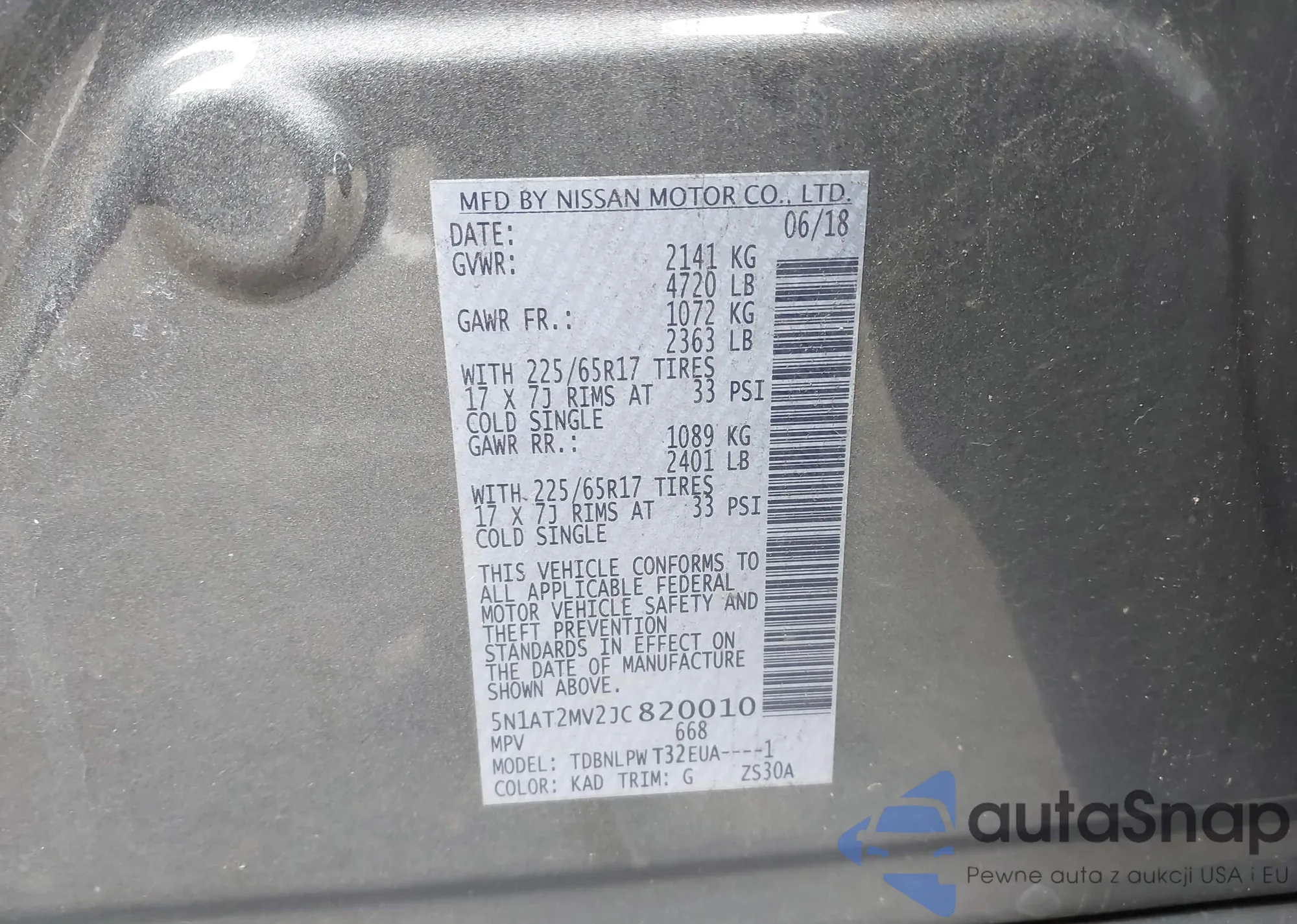 LOT: 43846059 VIN: 5N1AT2MV2JC820010
