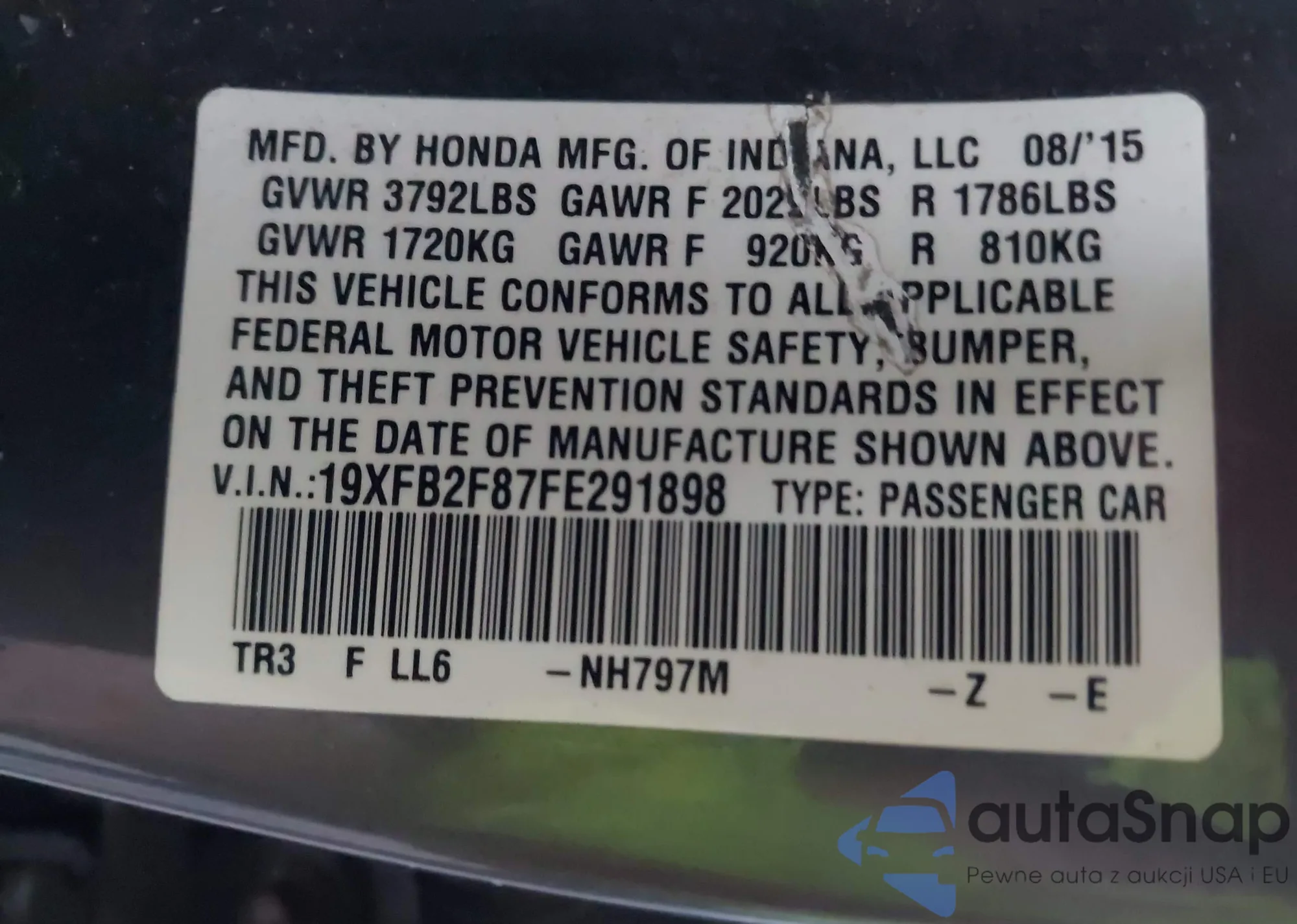 • VIN 19XFB2F87FE291898