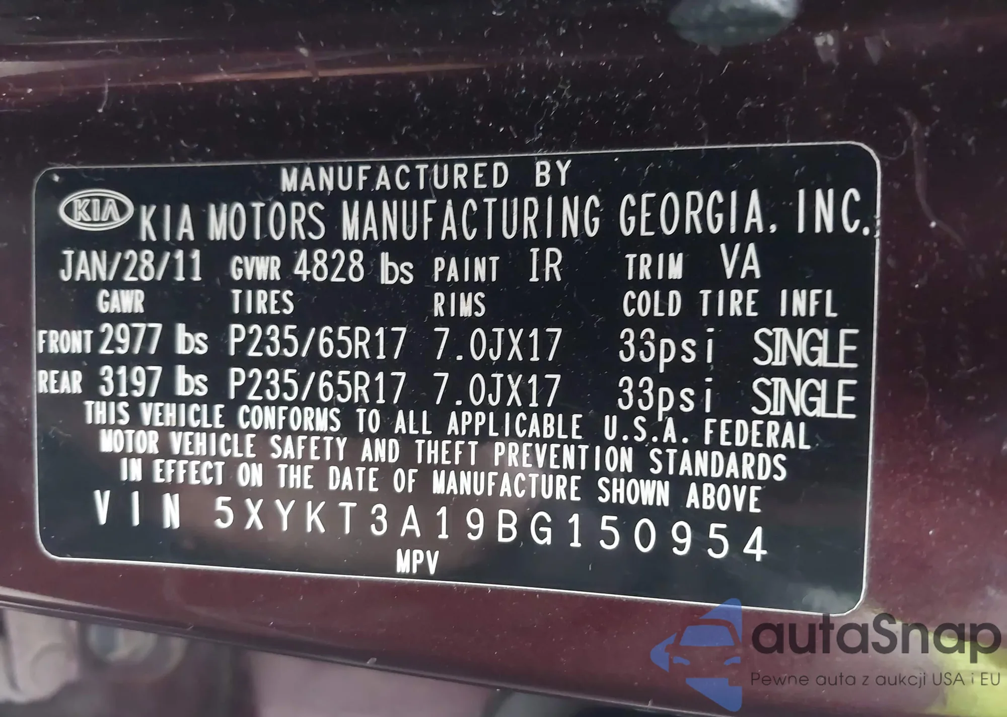 • VIN WBA1F5C50EV255259