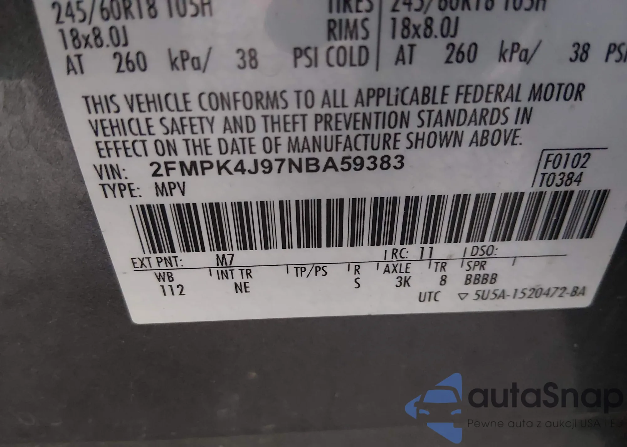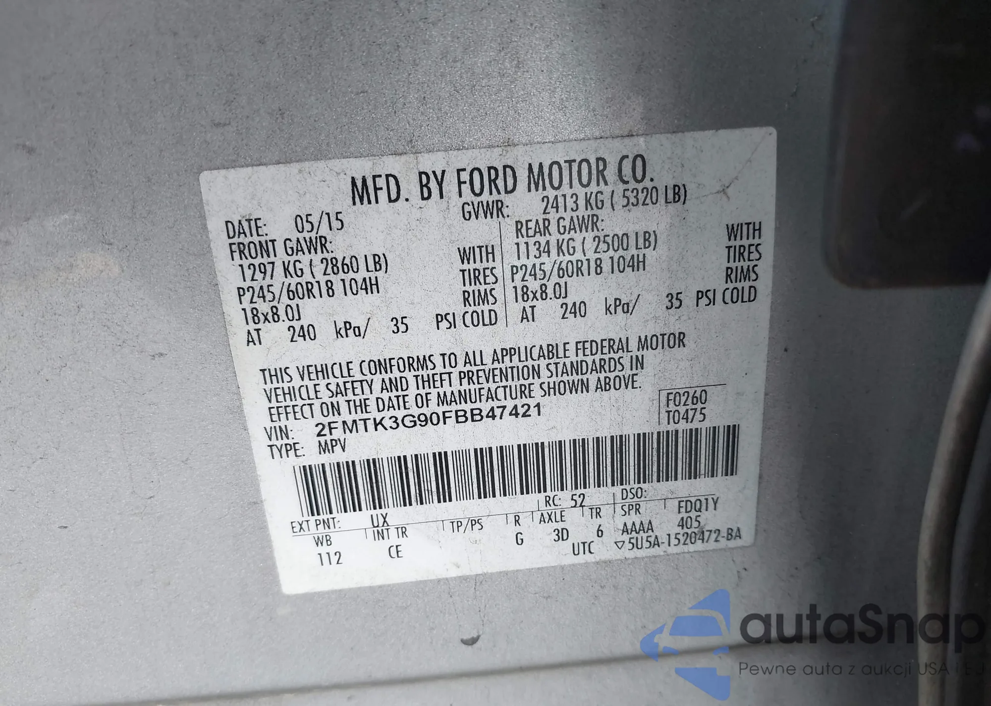 • VIN 2FMTK3G90FBB47421