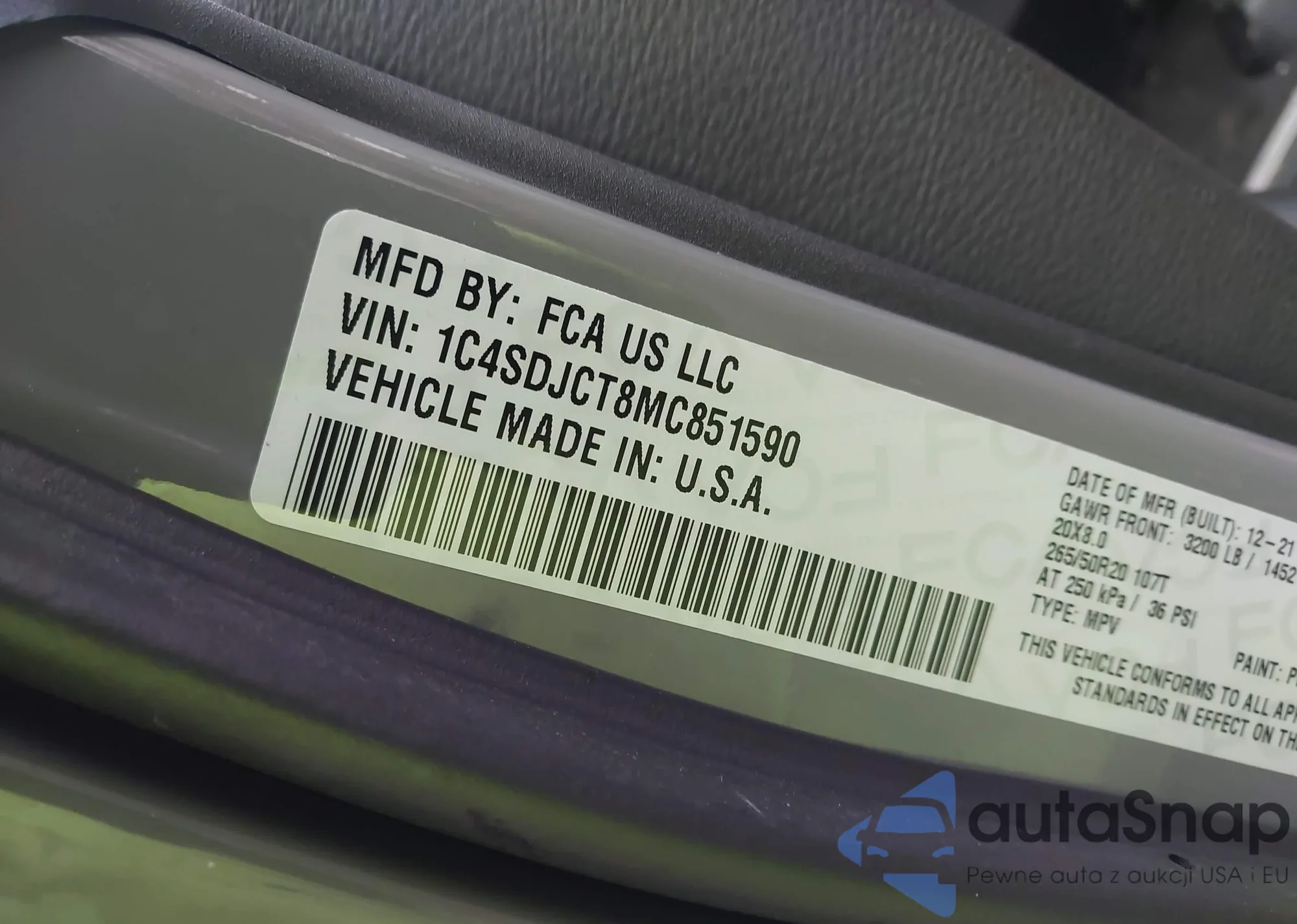LOT: 43733868 VIN: 1C4RJHBG3N8619200