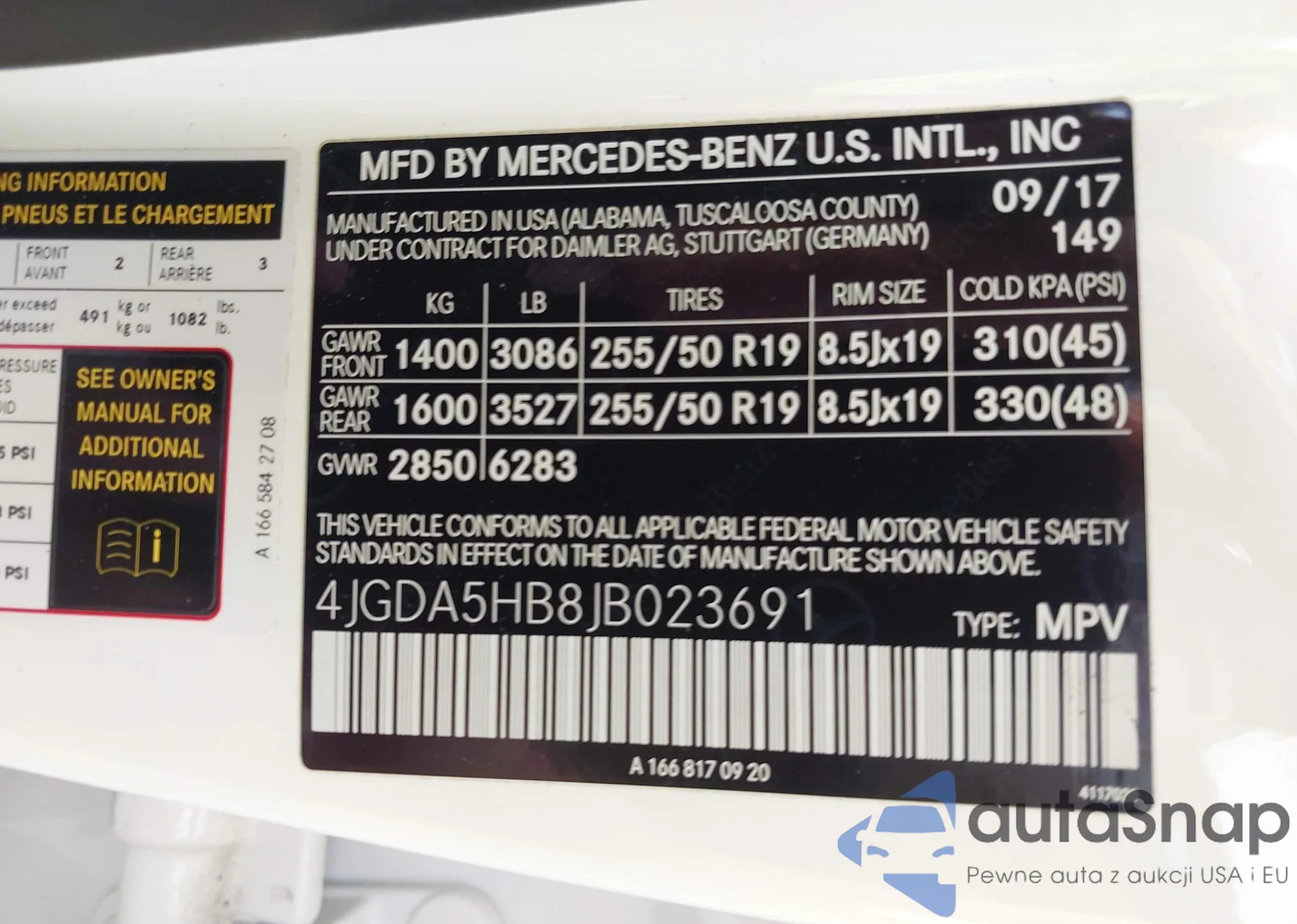 • VIN 4JGDA5HB8JB023691