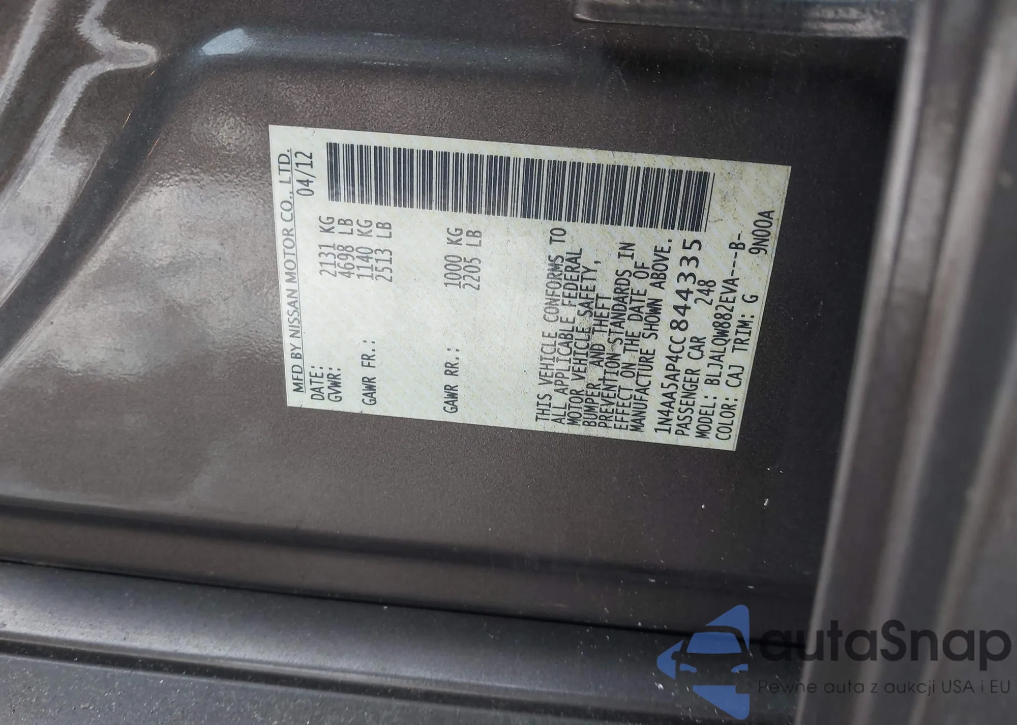 • VIN 1N4AA5AP4CC844335