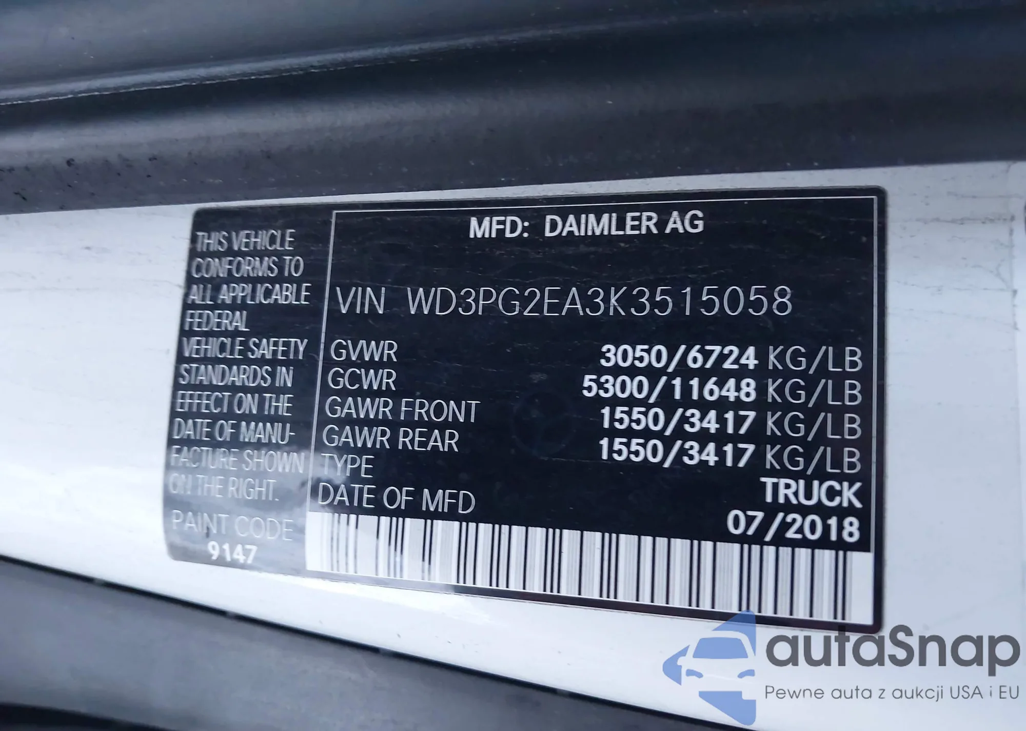 LOT: 43984005 VIN: WD3PG2EA3K3515058