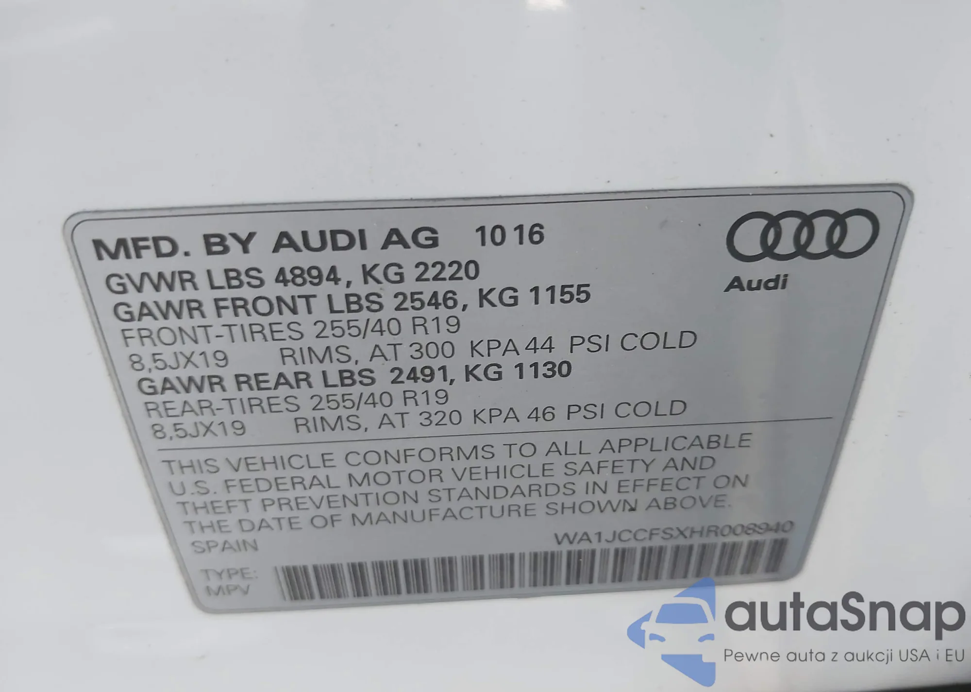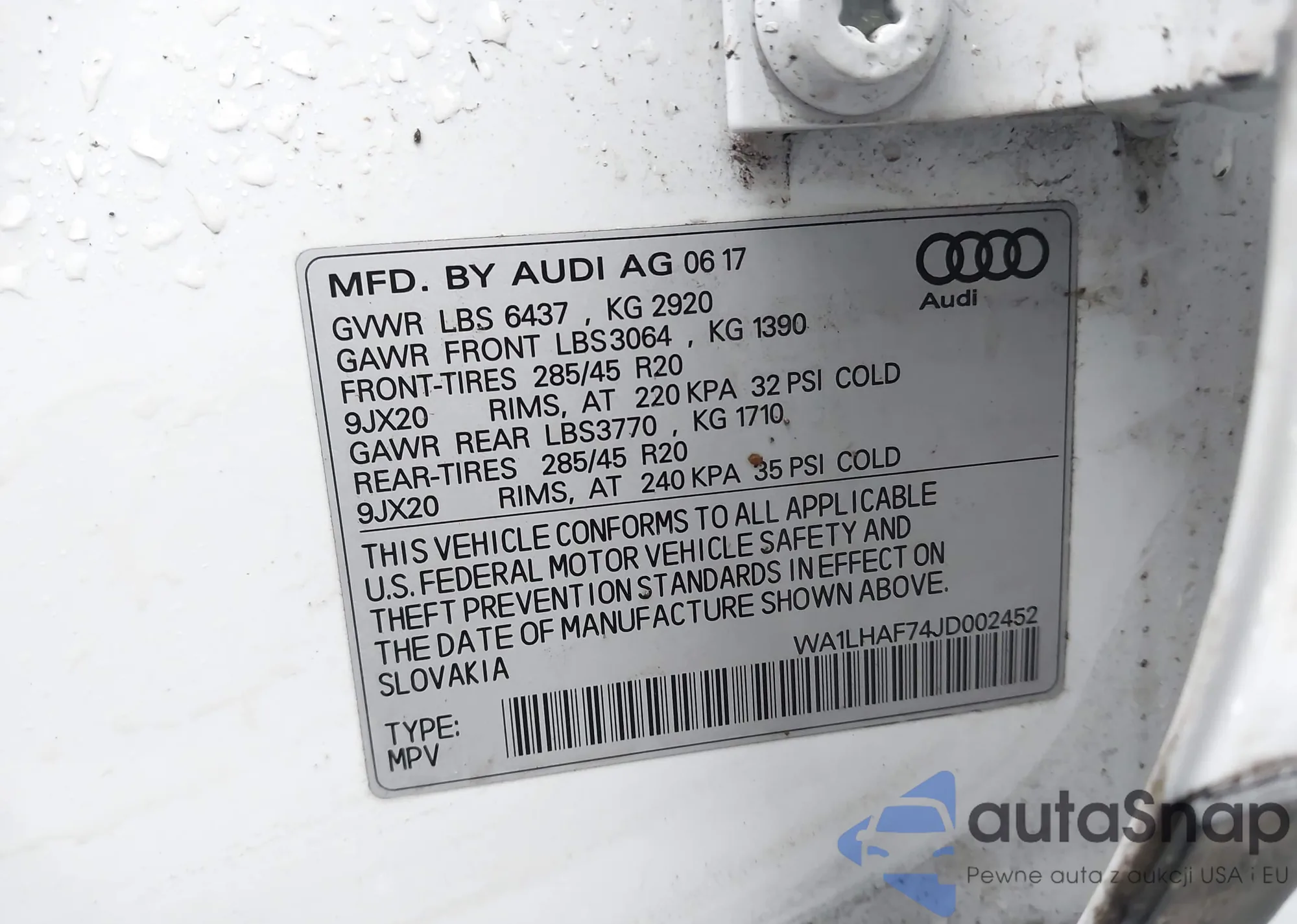 LOT: 44031582 VIN: WA1LHAF74JD002452