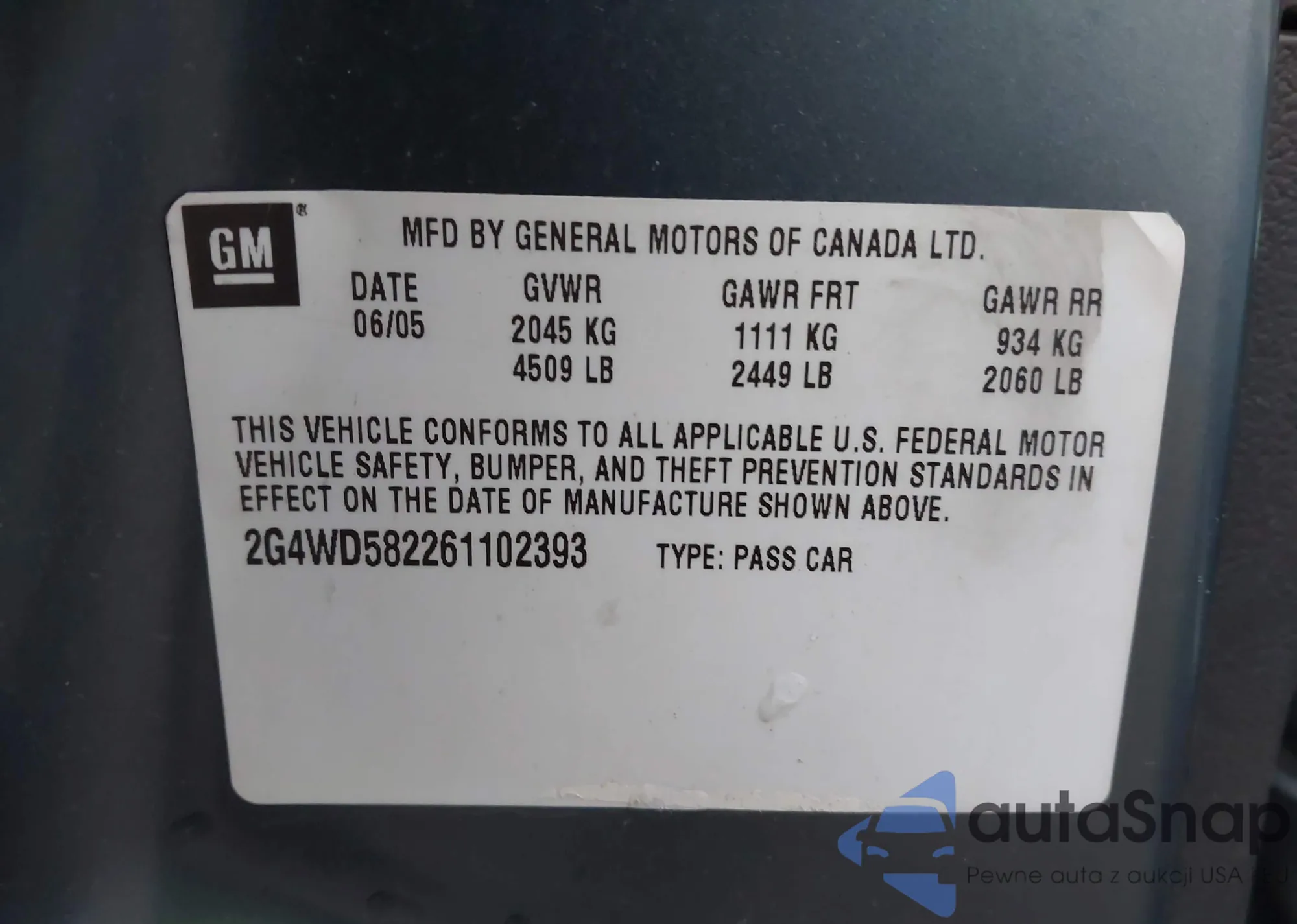 • VIN 3FAHP0HG6AR238989
