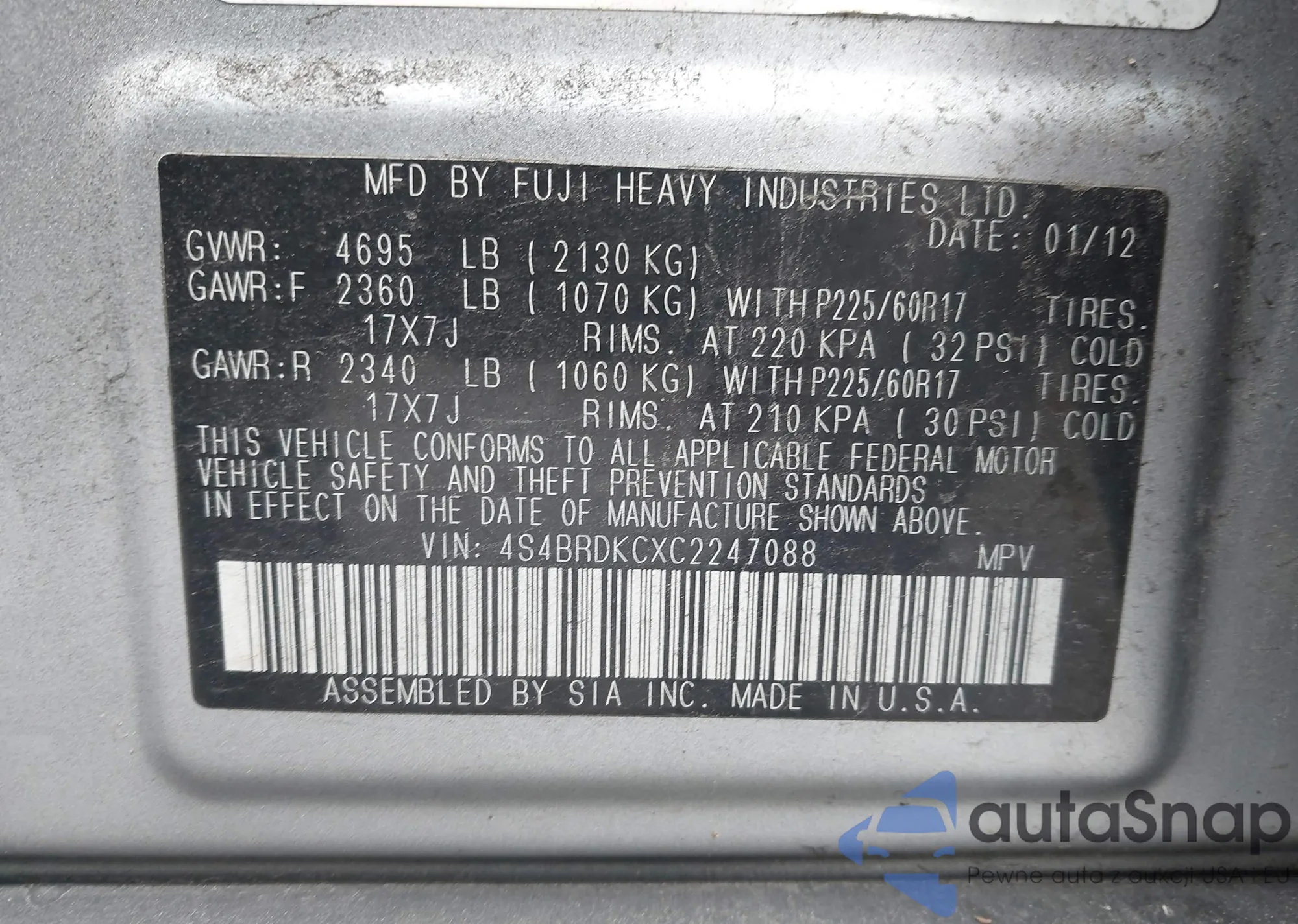 • VIN 1C4RJFCT5CC346111