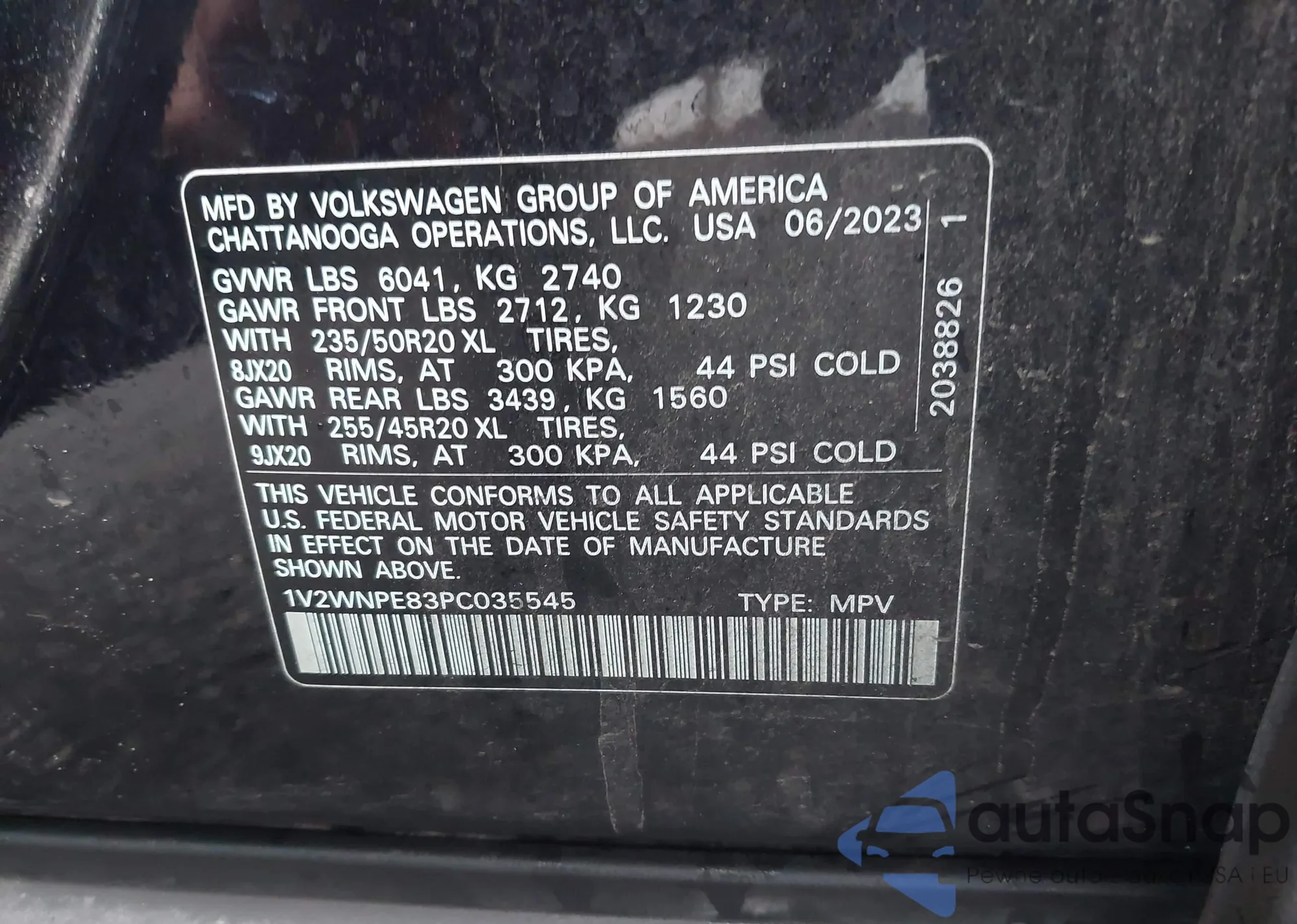 • VIN 3VWC57BU6MM091668