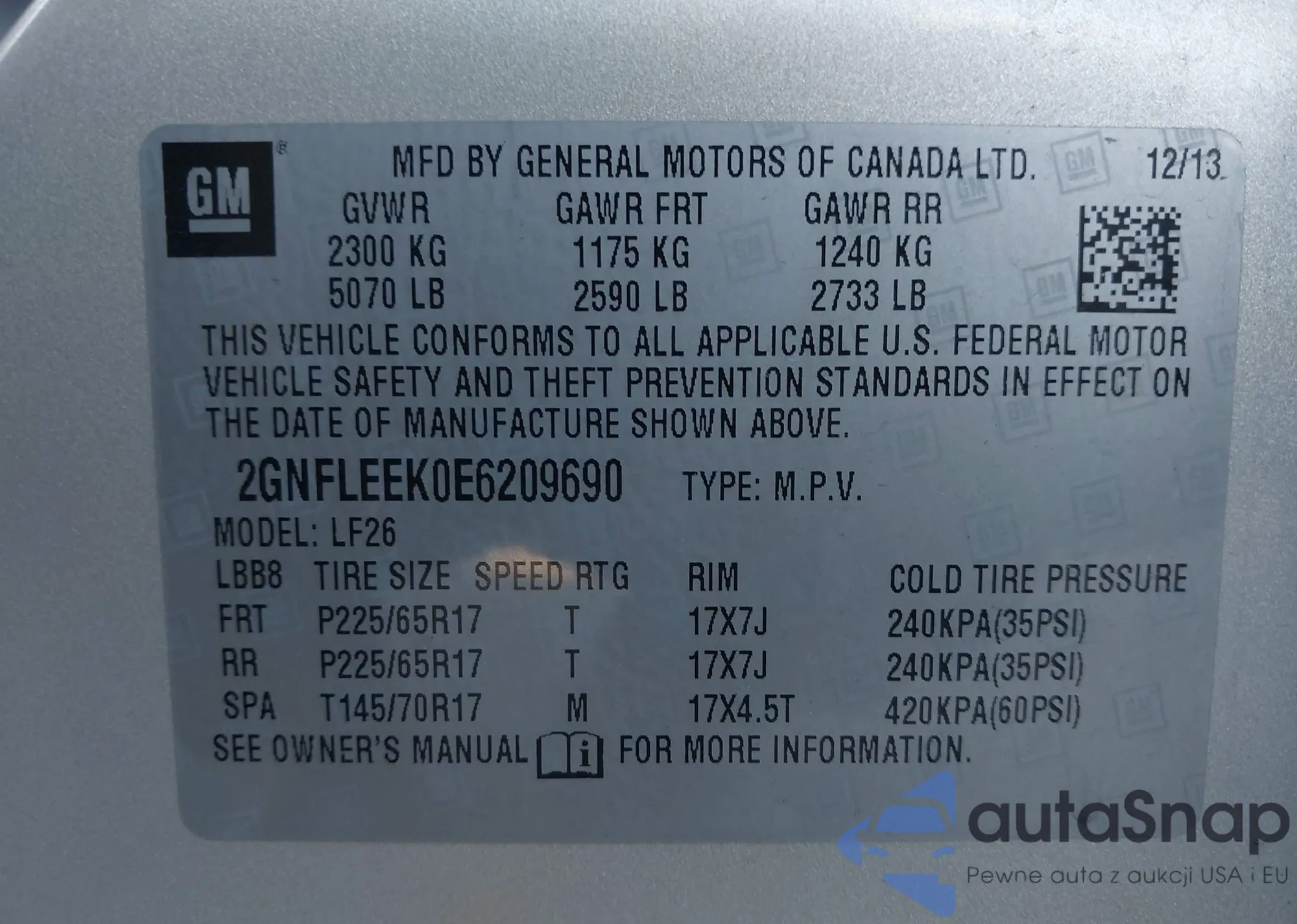 LOT: 43867055 VIN: 5NPDH4AE2DH176651