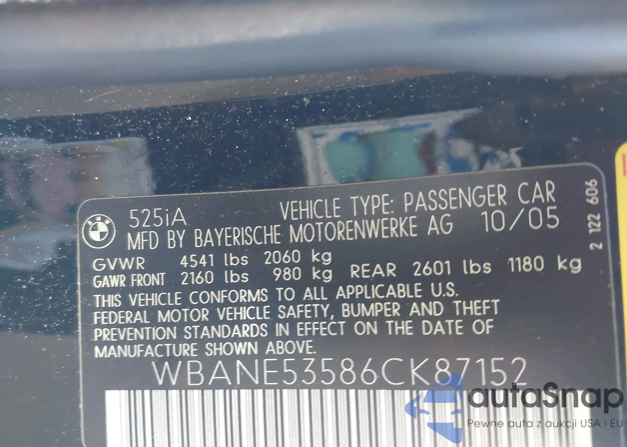 LOT: 43948020 VIN: WBANE53586CK87152