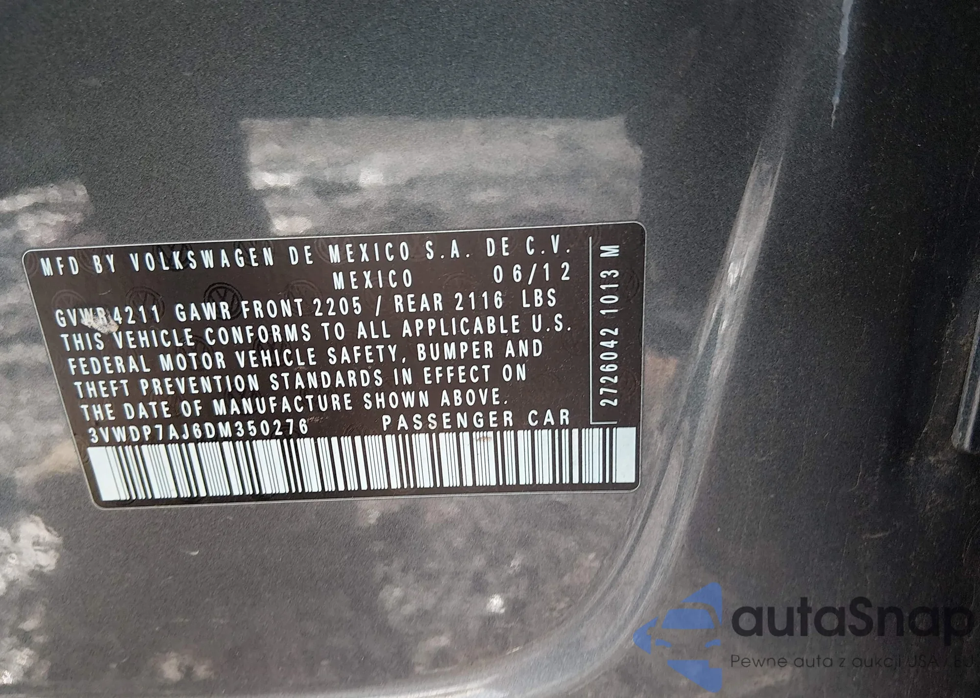 • VIN 3VWDP7AJ6DM350276