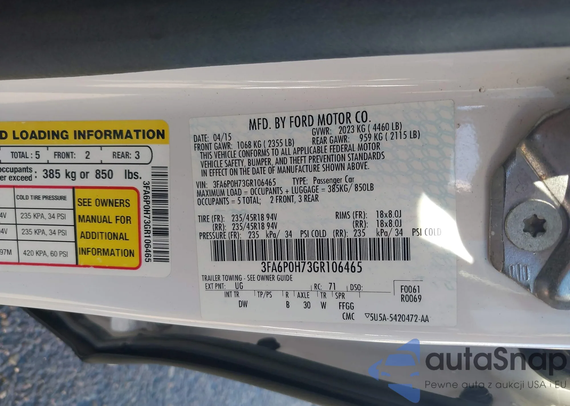 LOT: 44121011 VIN: 3FA6P0H73ER130150