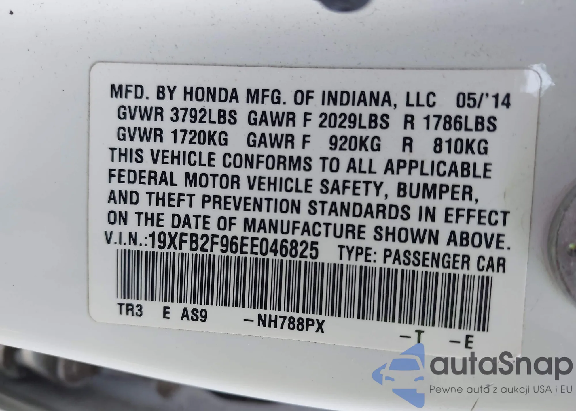 LOT: 44110256 VIN: 19XFB2F96EE046825