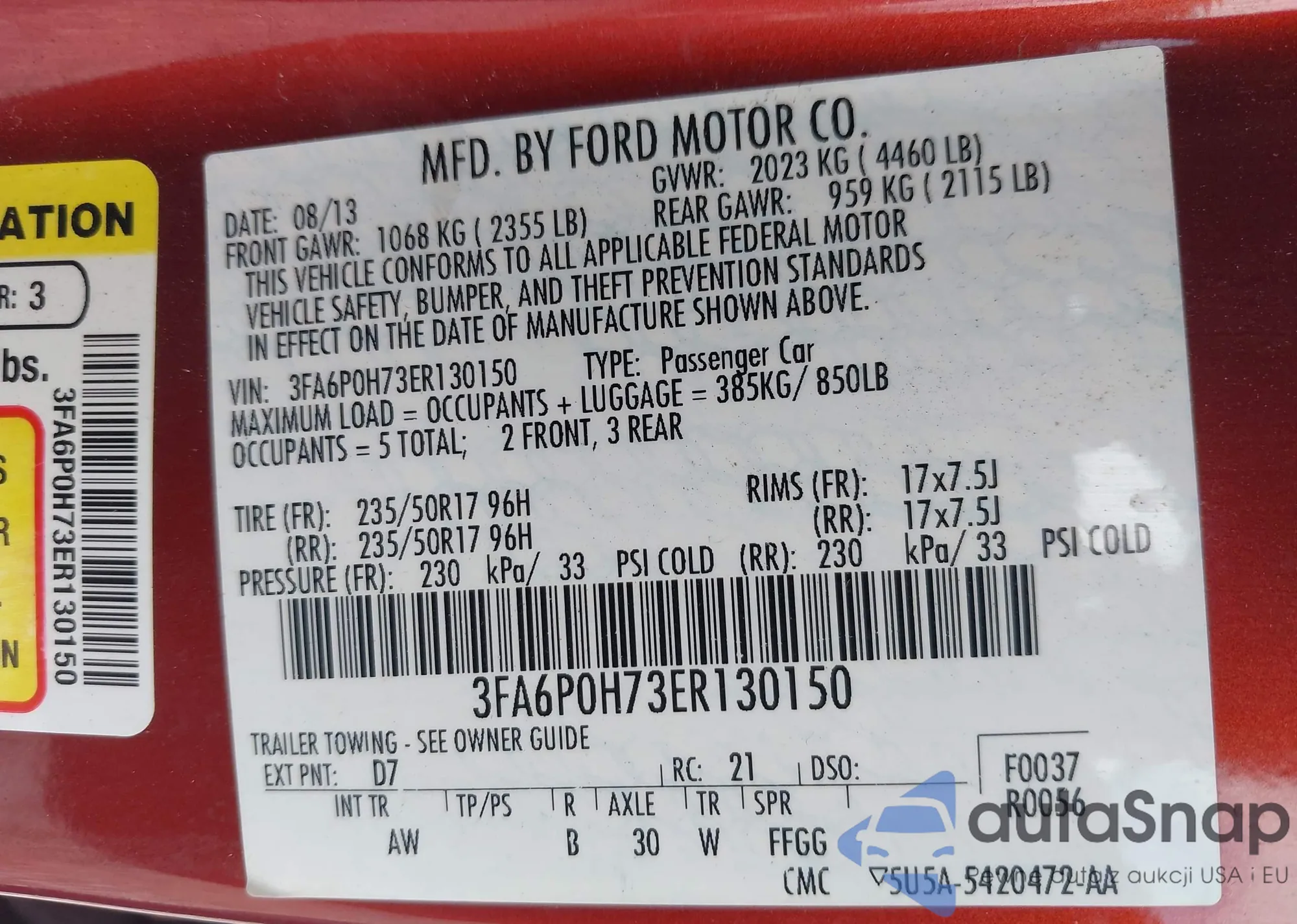 • VIN 3FA6P0H73ER130150