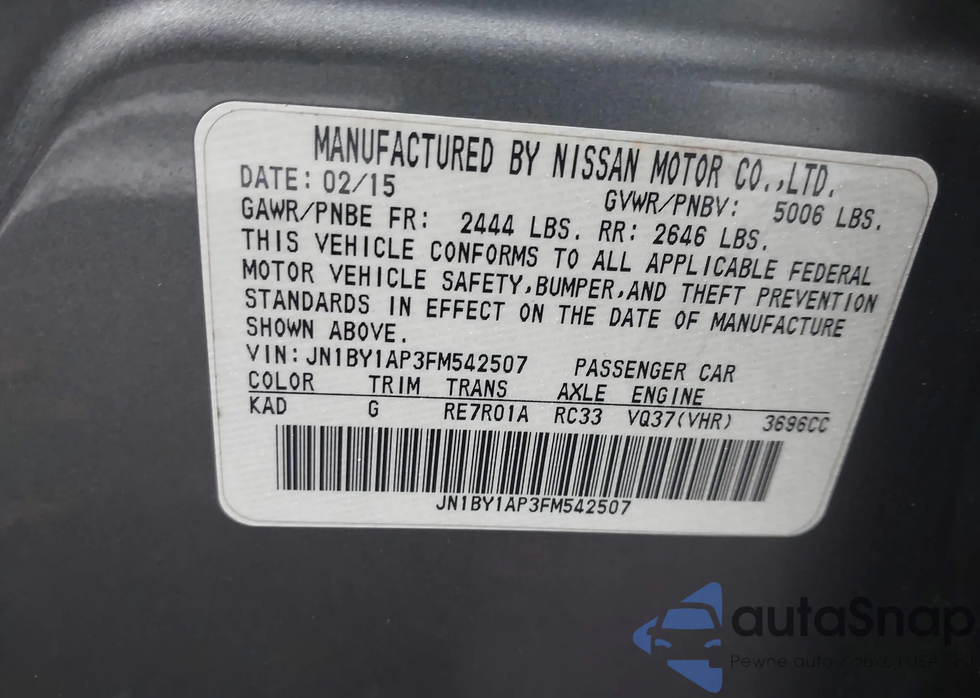 LOT: 43817646 VIN: JN1BY1AP3FM542507