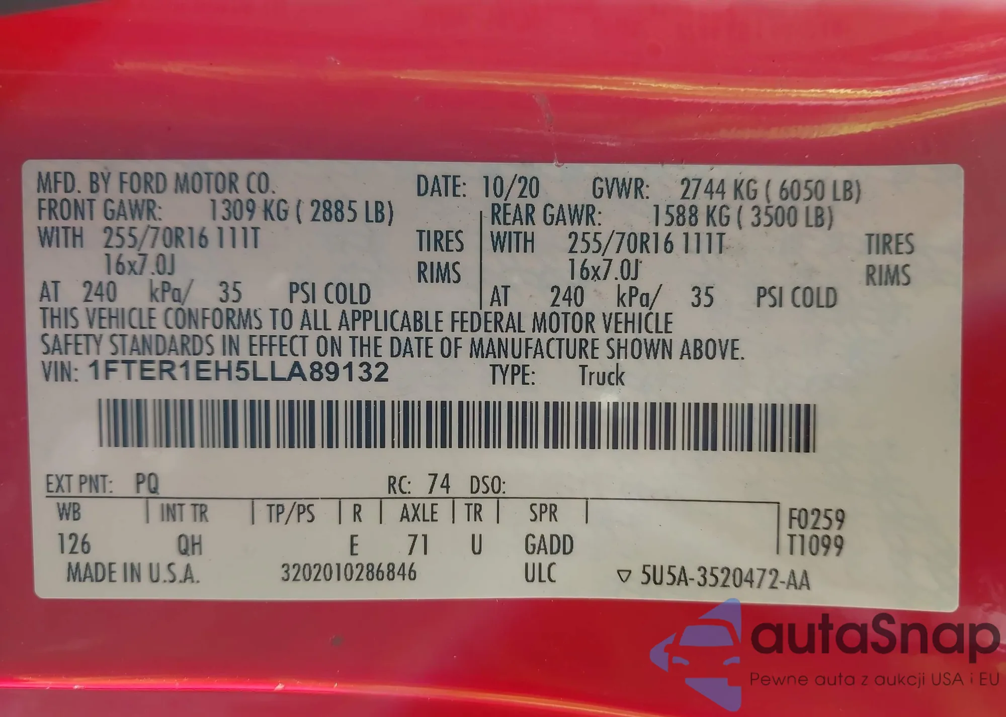 • VIN 1FTER1EH5LLA89132