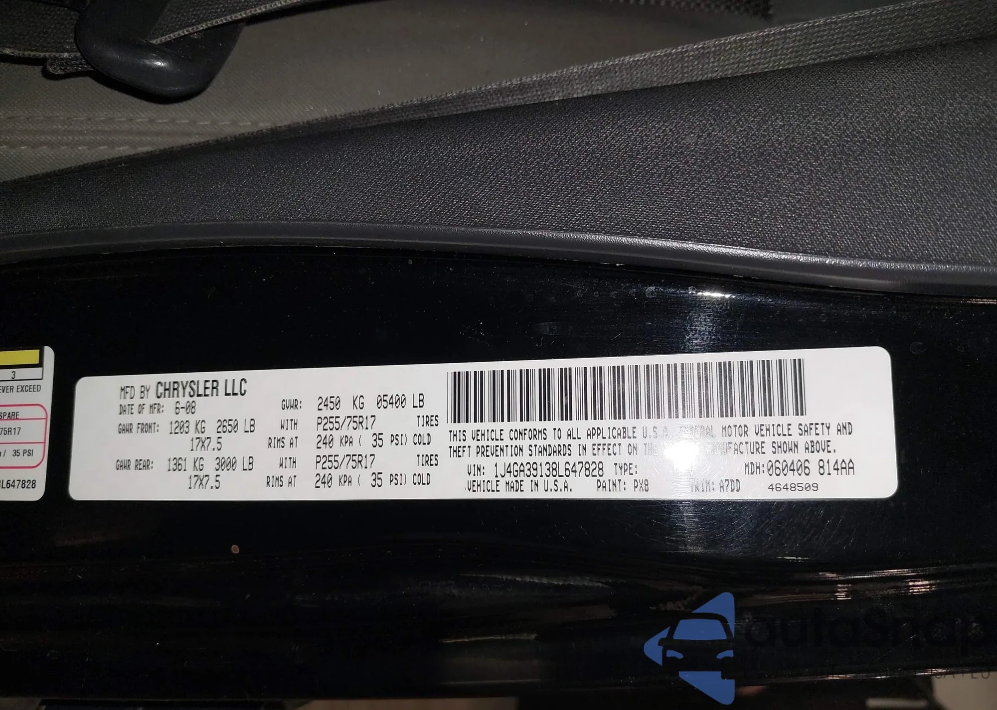 LOT: 44058145 VIN: 1J4GA39138L647828