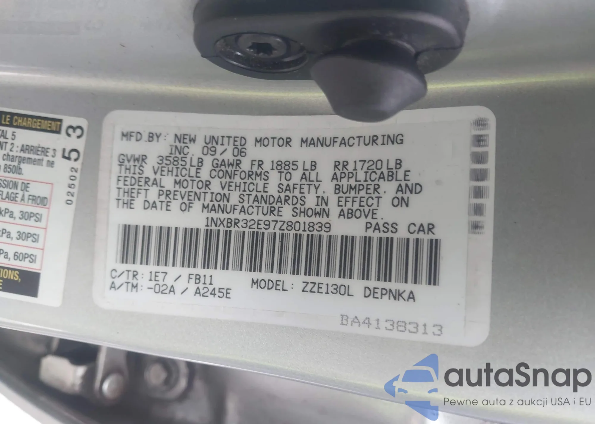 • VIN 1FTRF12W97KB93504