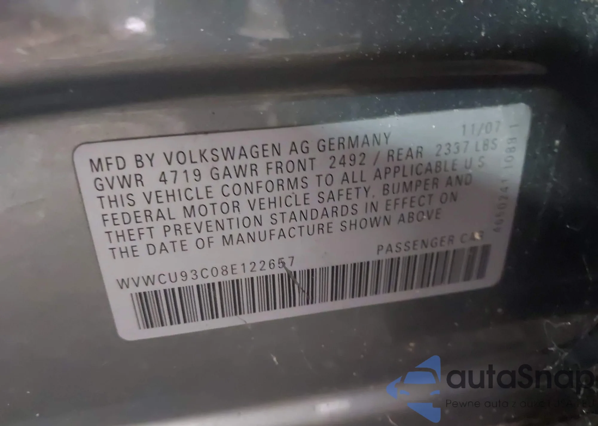 • VIN WVWCU93C08E122657