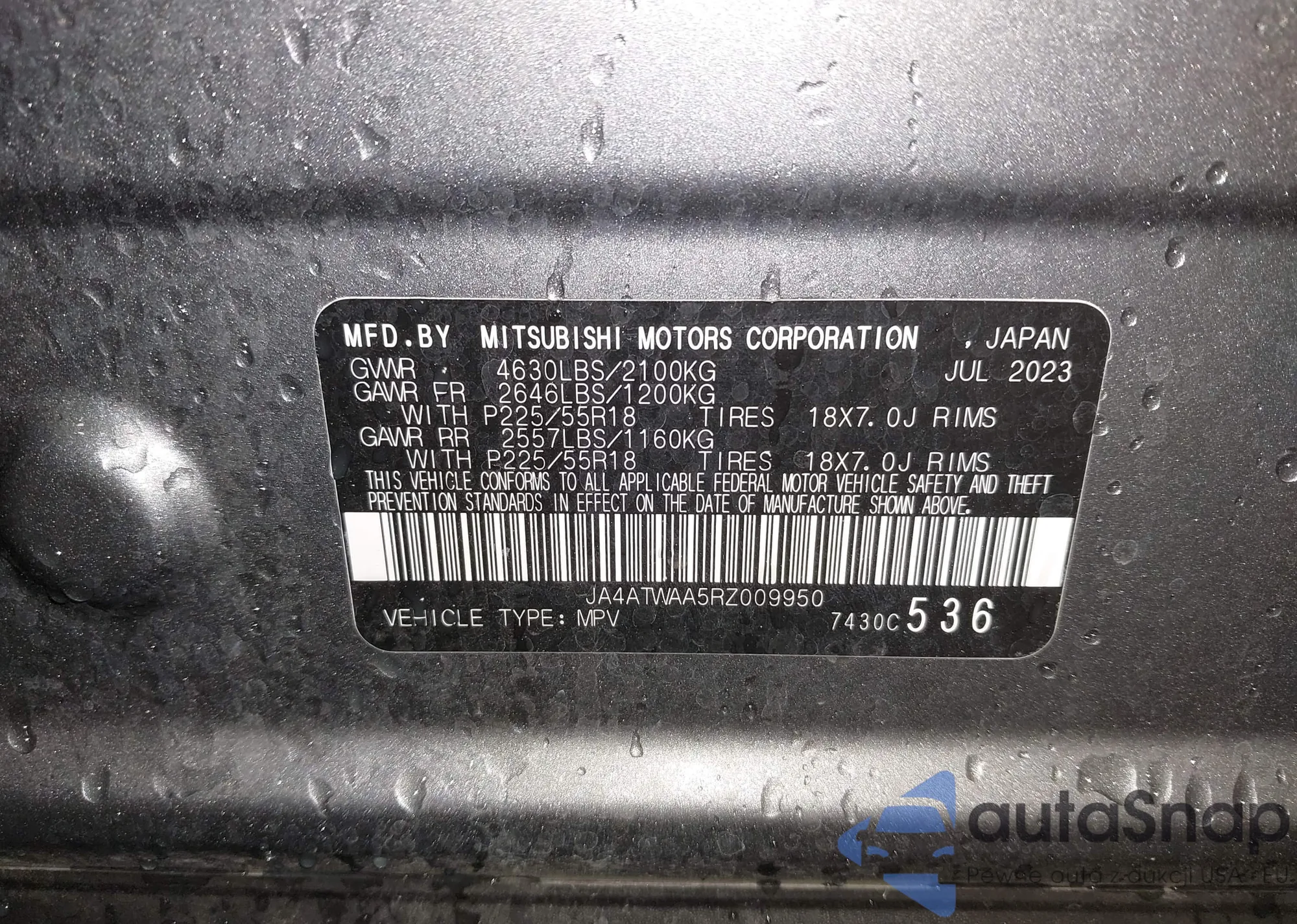 • VIN JA4ATWAA5RZ009950