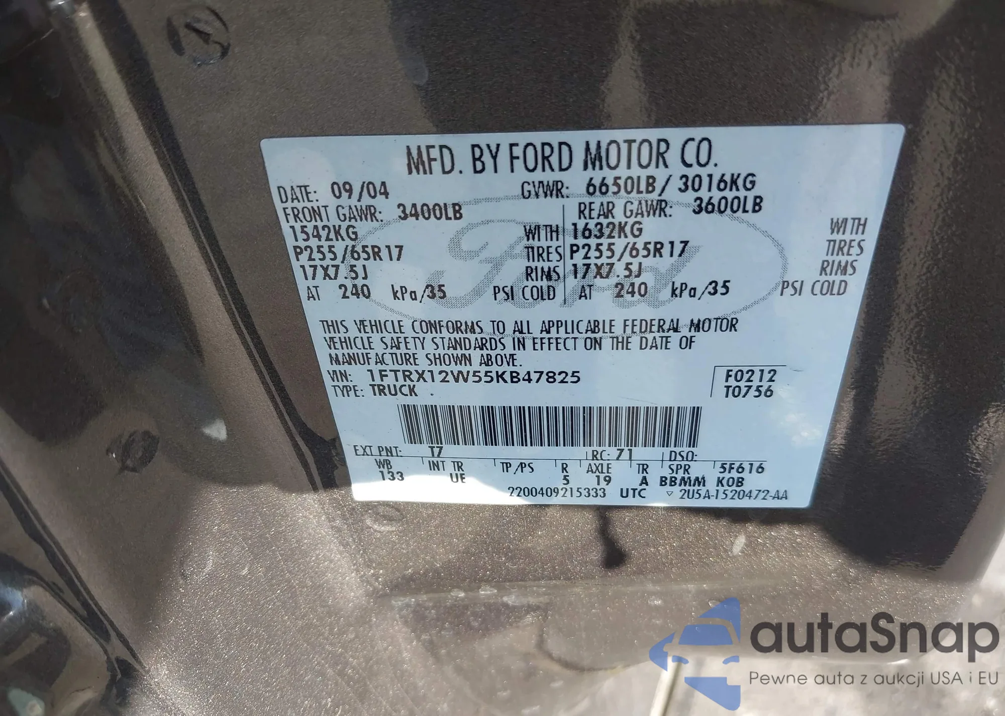 LOT: 44181066 VIN: 1FTRX12W55KB47825