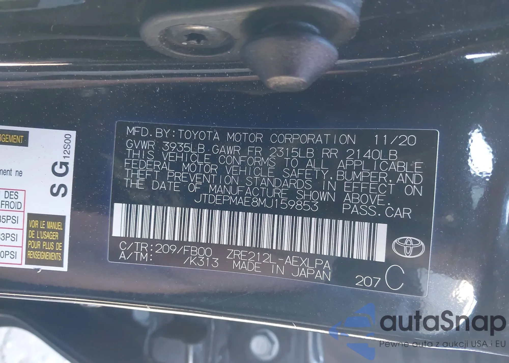 • VIN 4T1KZ1AK0NU068749