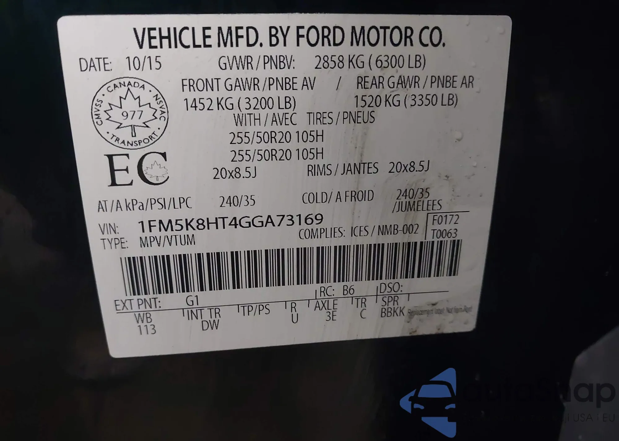 • VIN 1FM5K8HT4GGA73169