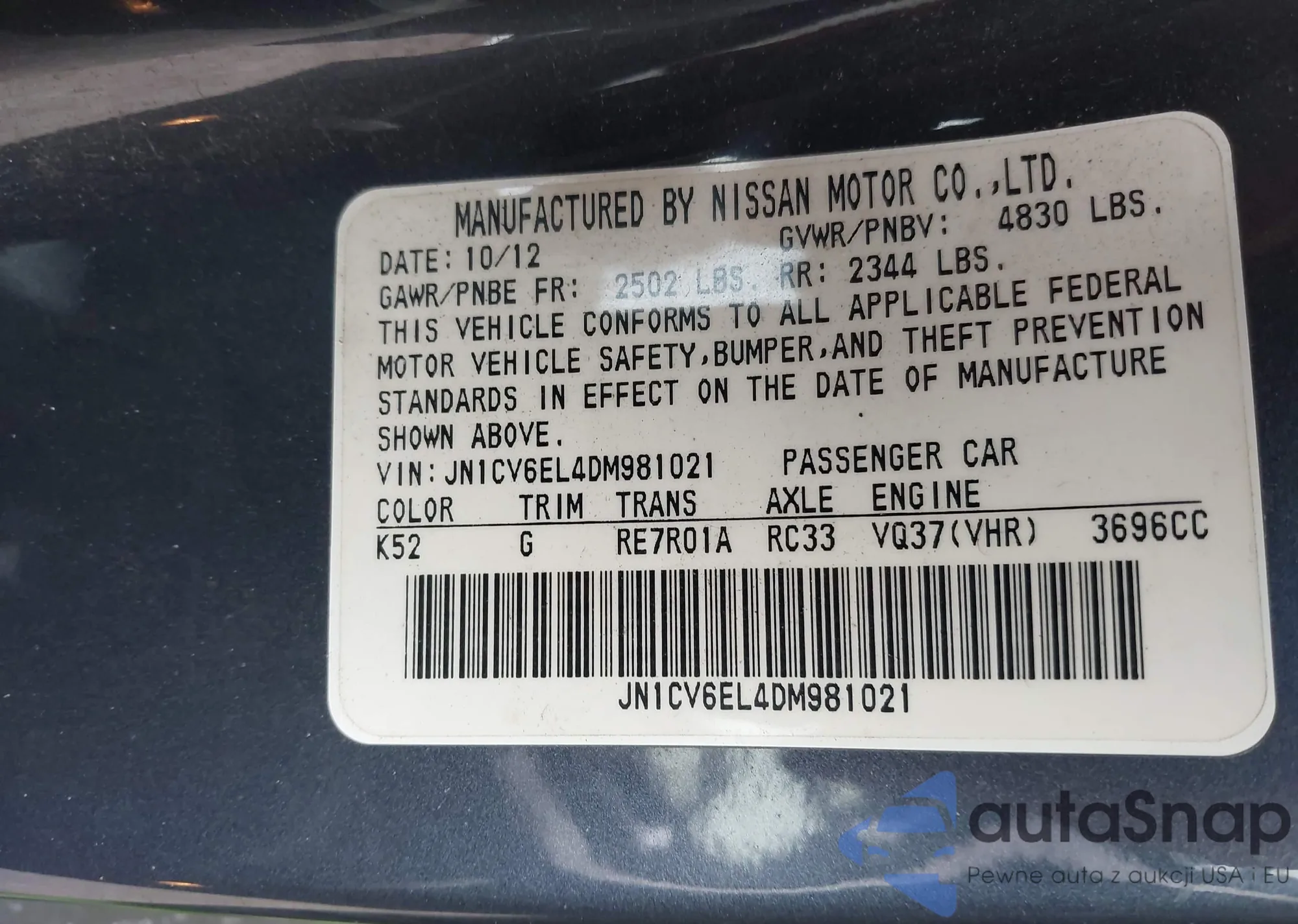LOT: 44140543 VIN: JN8AZ1MW5BW178361