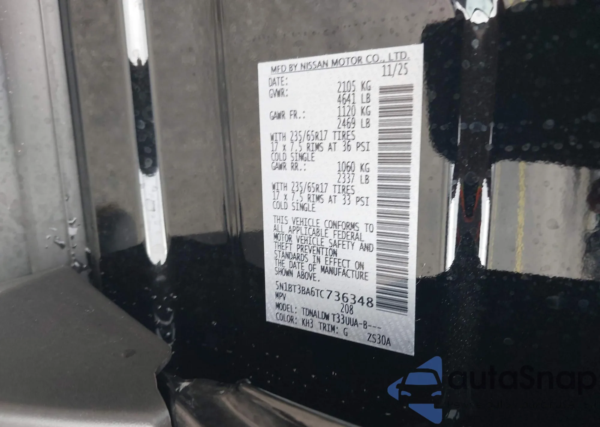 • VIN 5N1BT3BA6TC736348