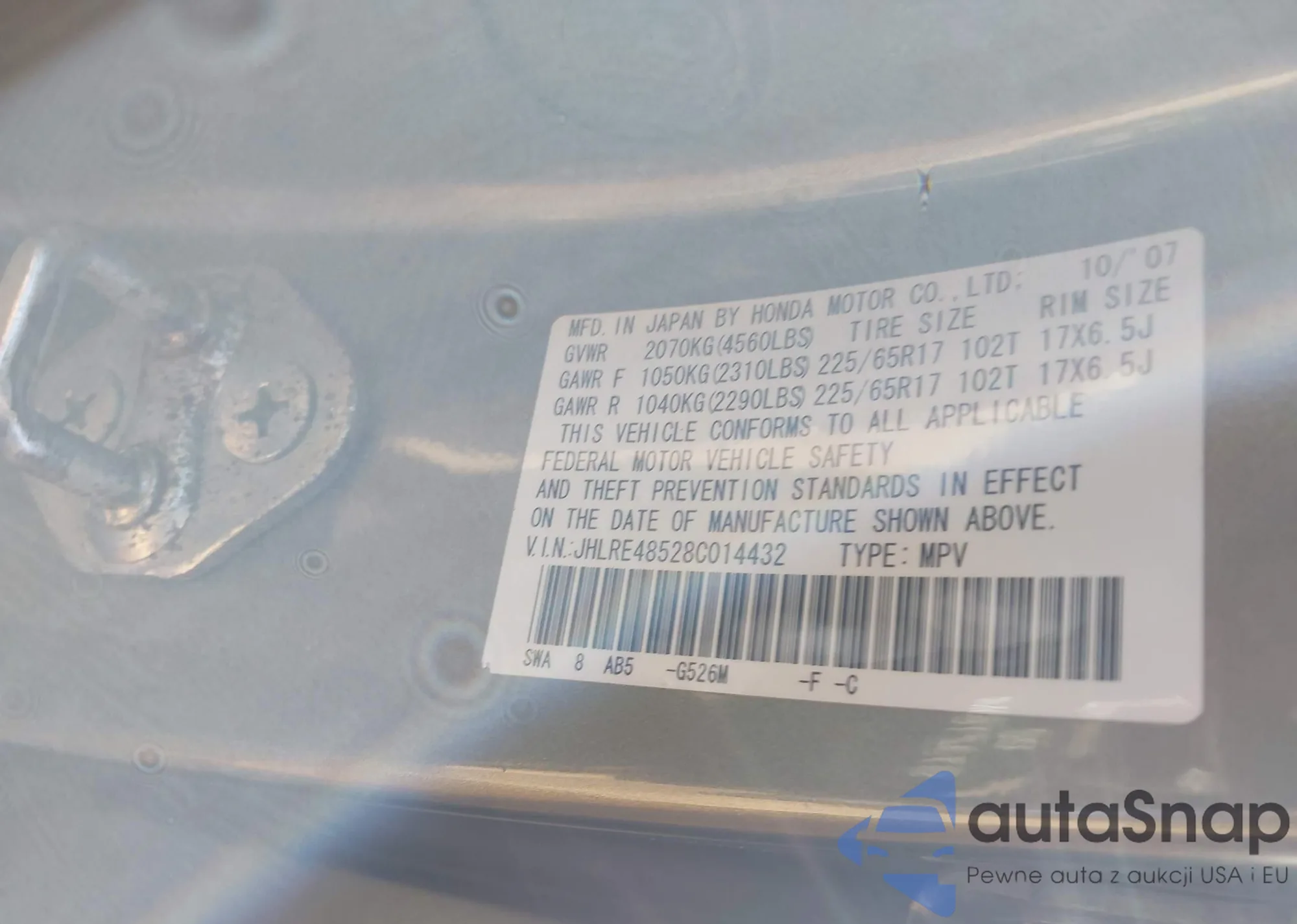 • VIN JHLRE48528C014432