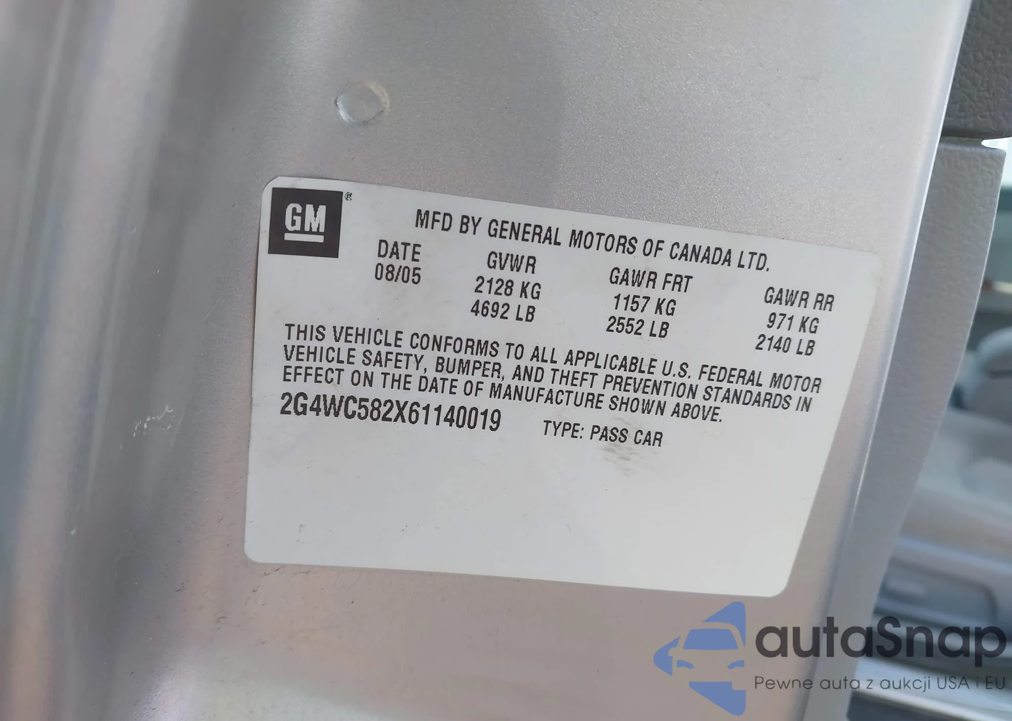 LOT: 44114351 VIN: 2G4WC582X61140019