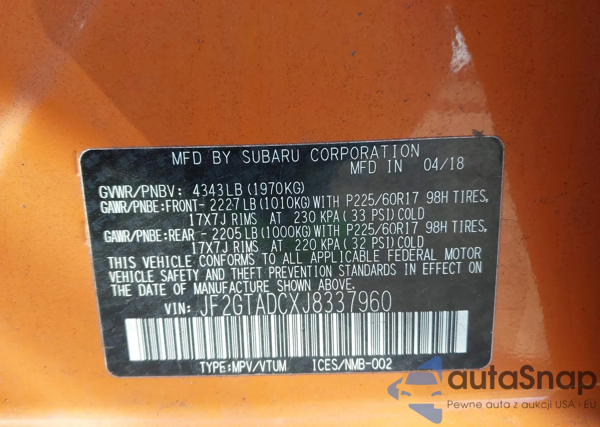 • VIN JF2GTADCXJ8337960