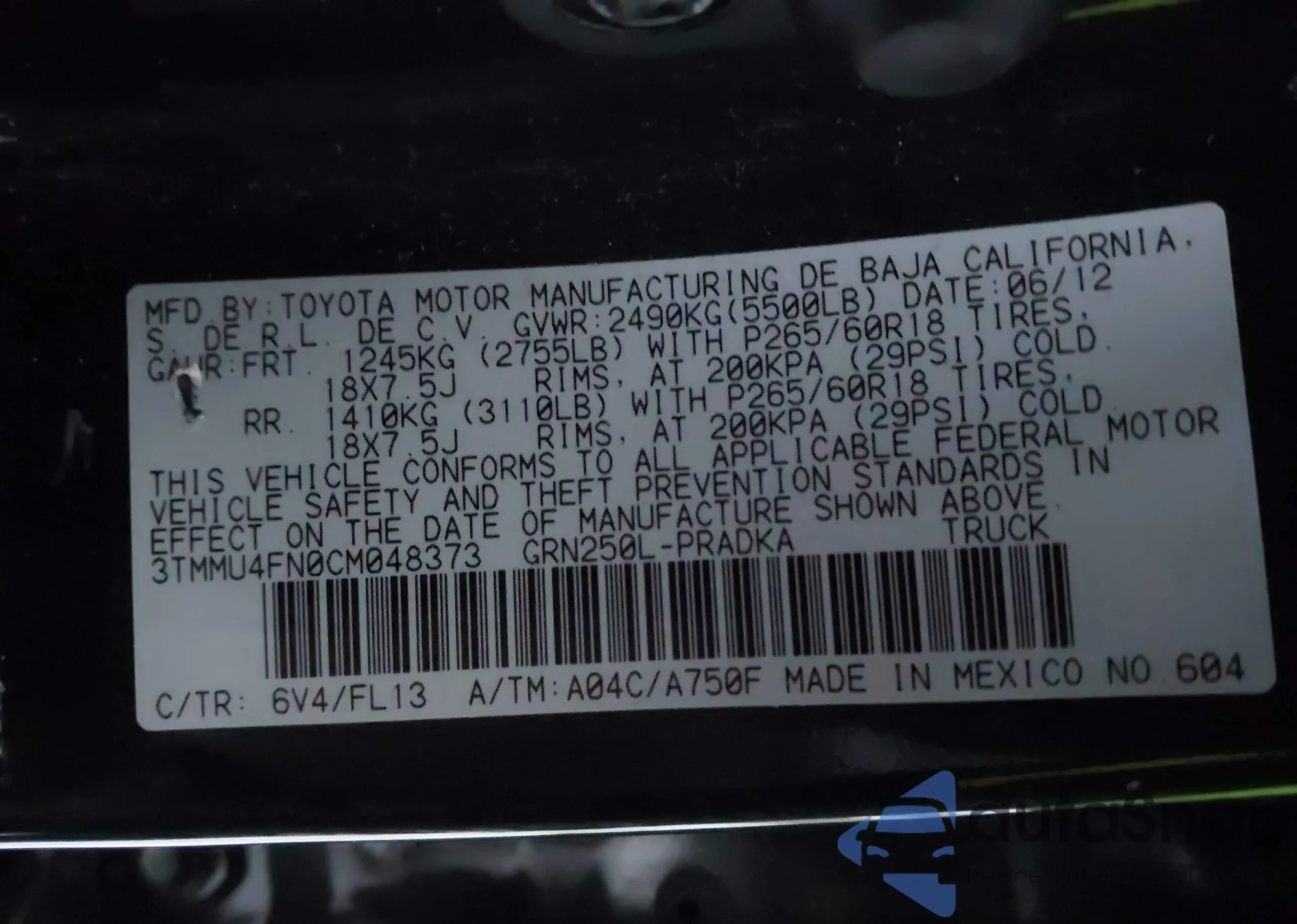 • VIN 3TMMU4FN0CM048373