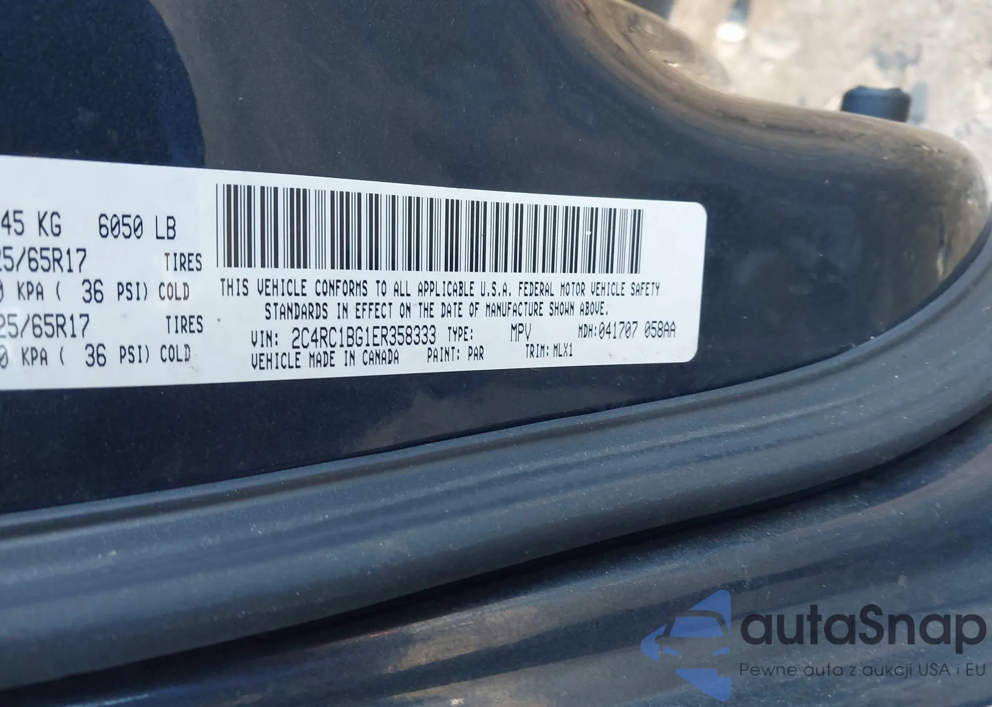 • VIN 2C4RC1BG1ER358333
