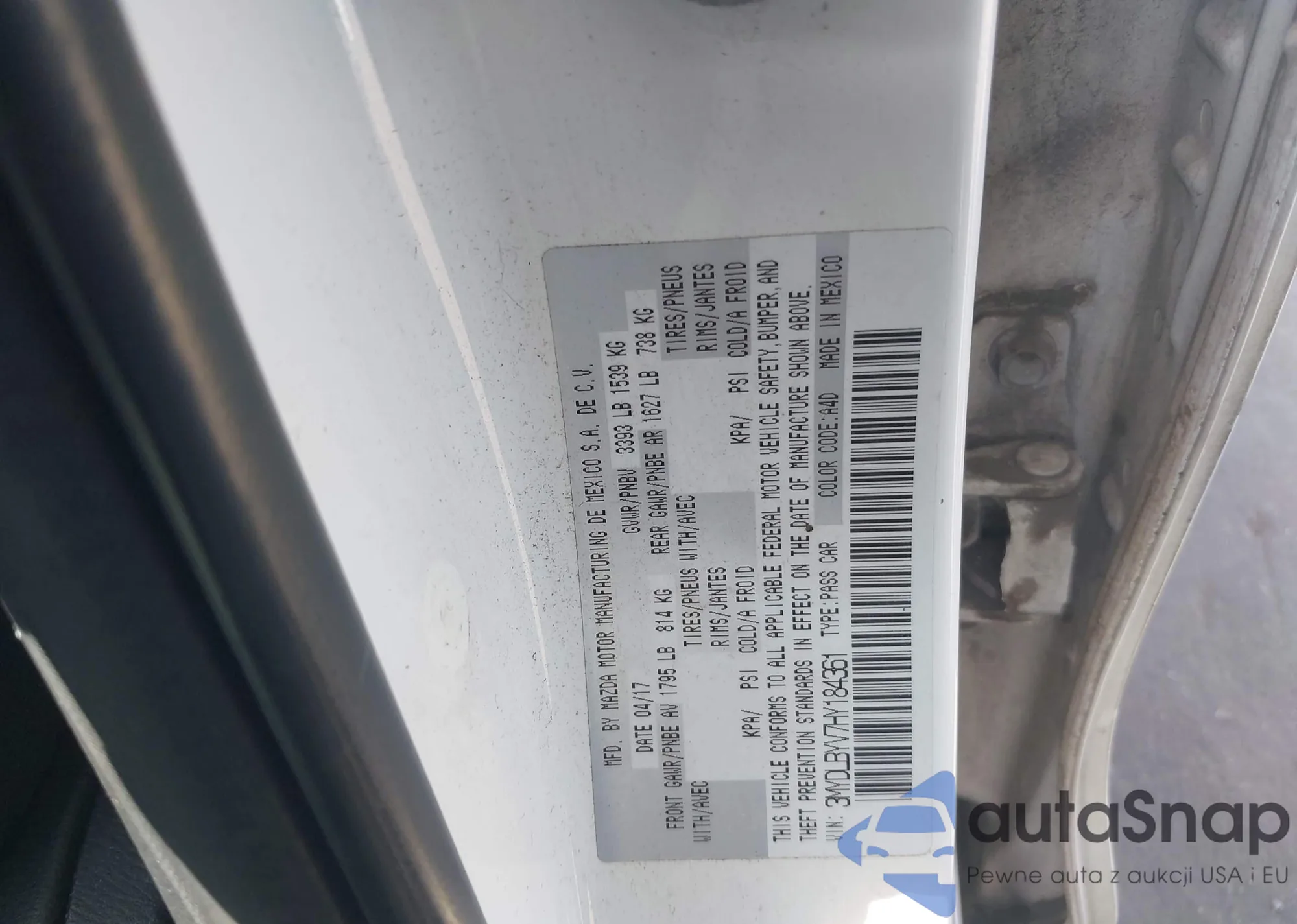 LOT: 42860524 VIN: 3MYDLBYV7HY184361