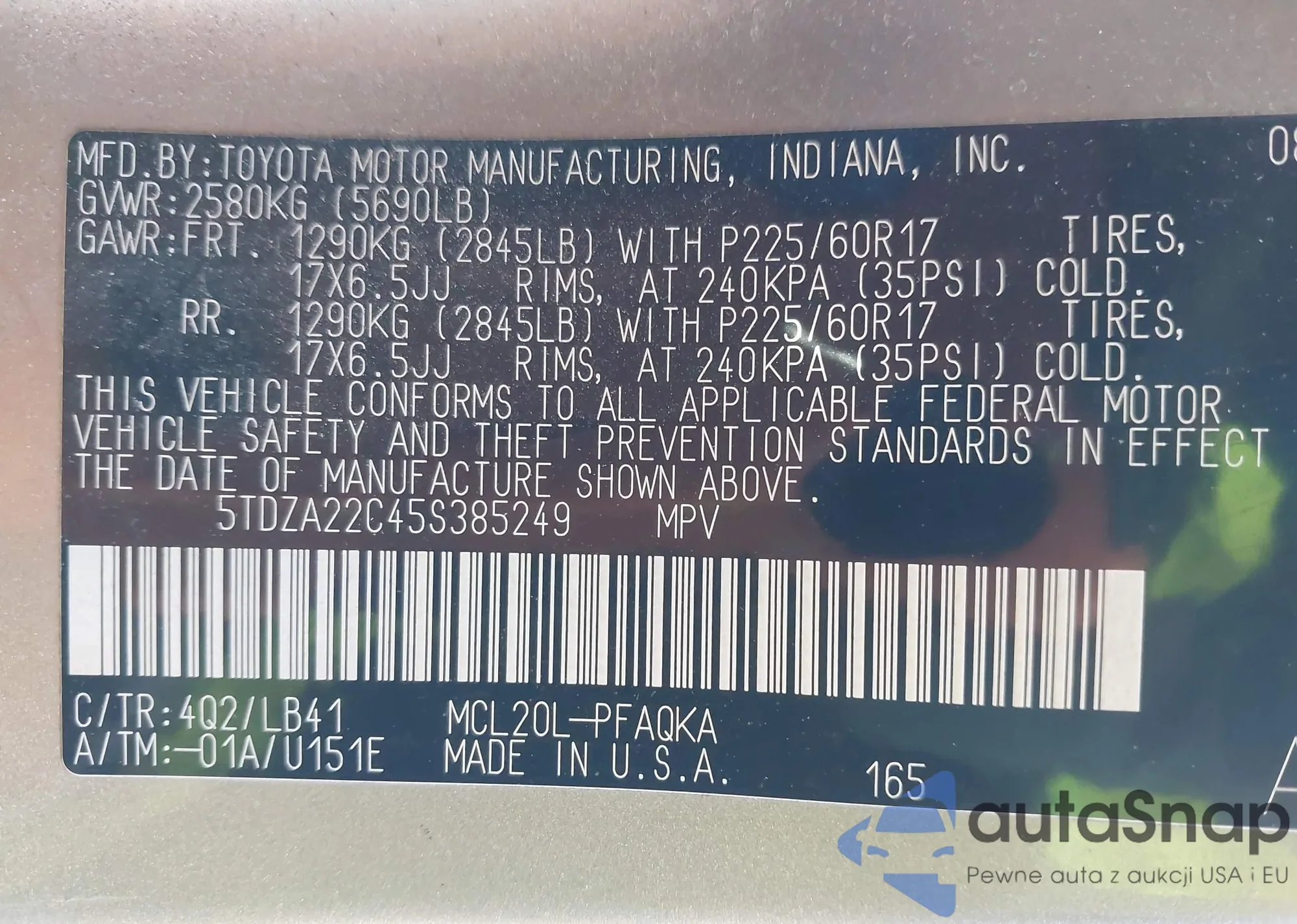 LOT: 44118621 VIN: 5TDZA22C45S385249