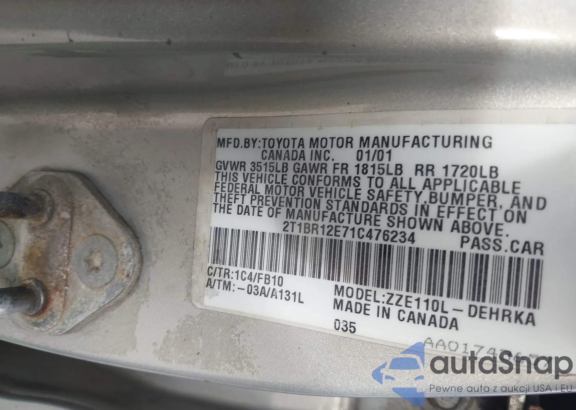 • VIN 2T1BR12E71C476234