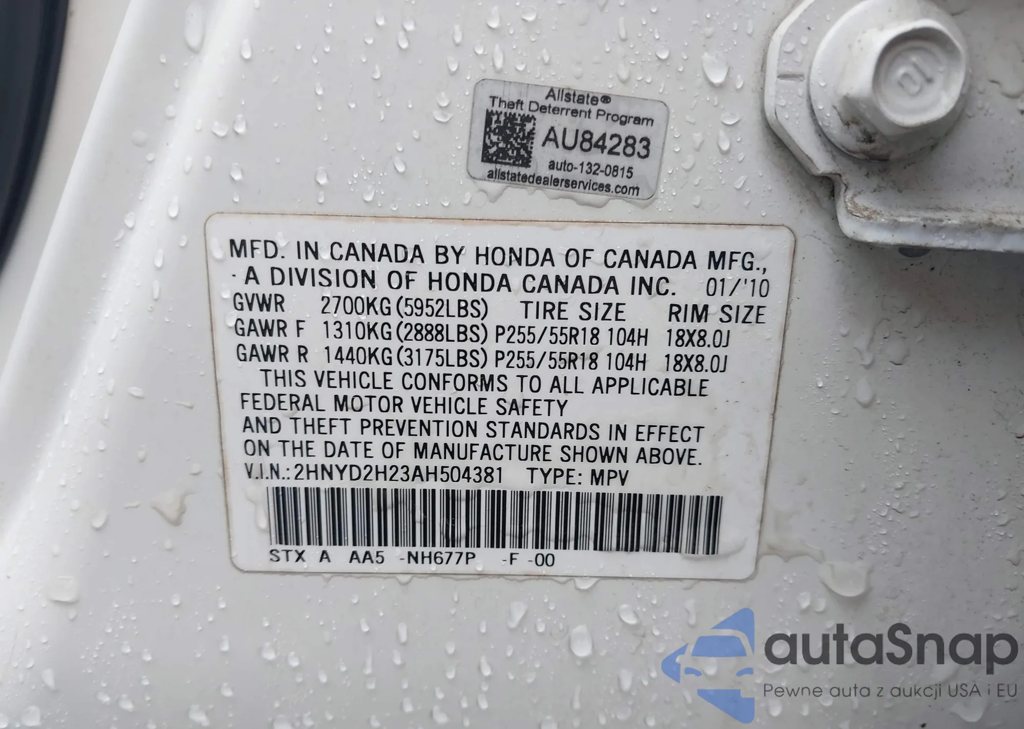 • VIN 2HNYD2H23AH504381