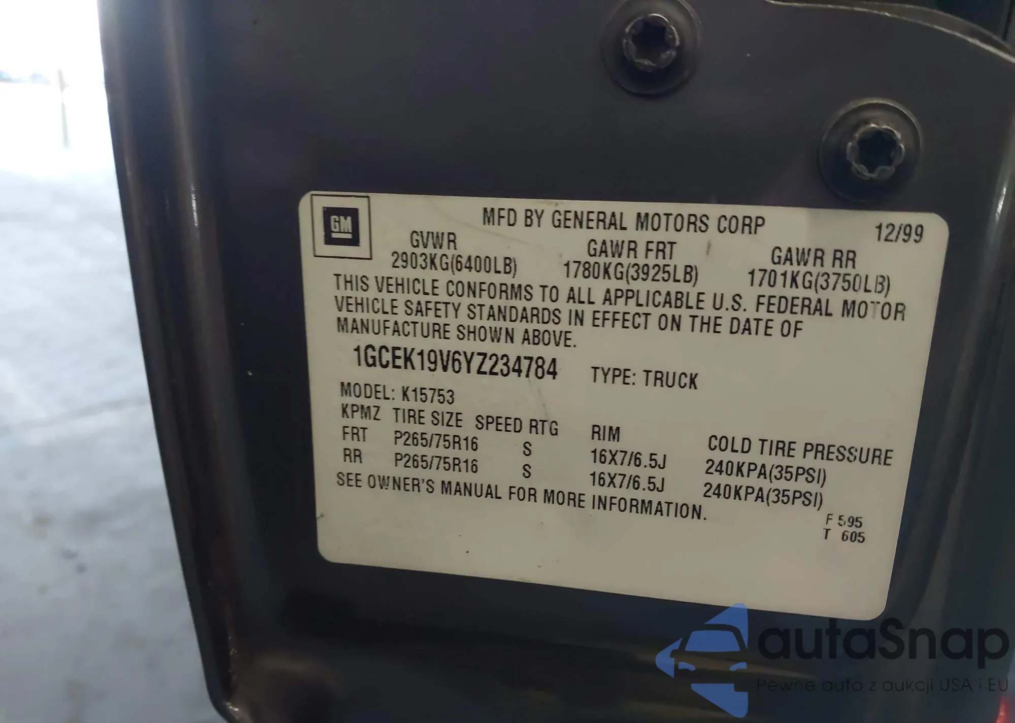 • VIN 1GCEK19V6YZ234784