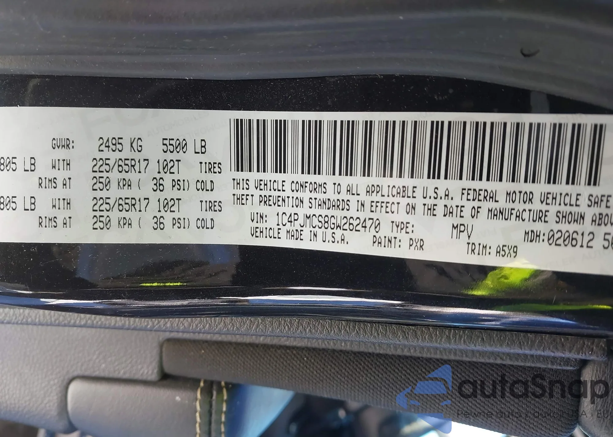 LOT: 43912217 VIN: 1C4PJMCS8GW262470
