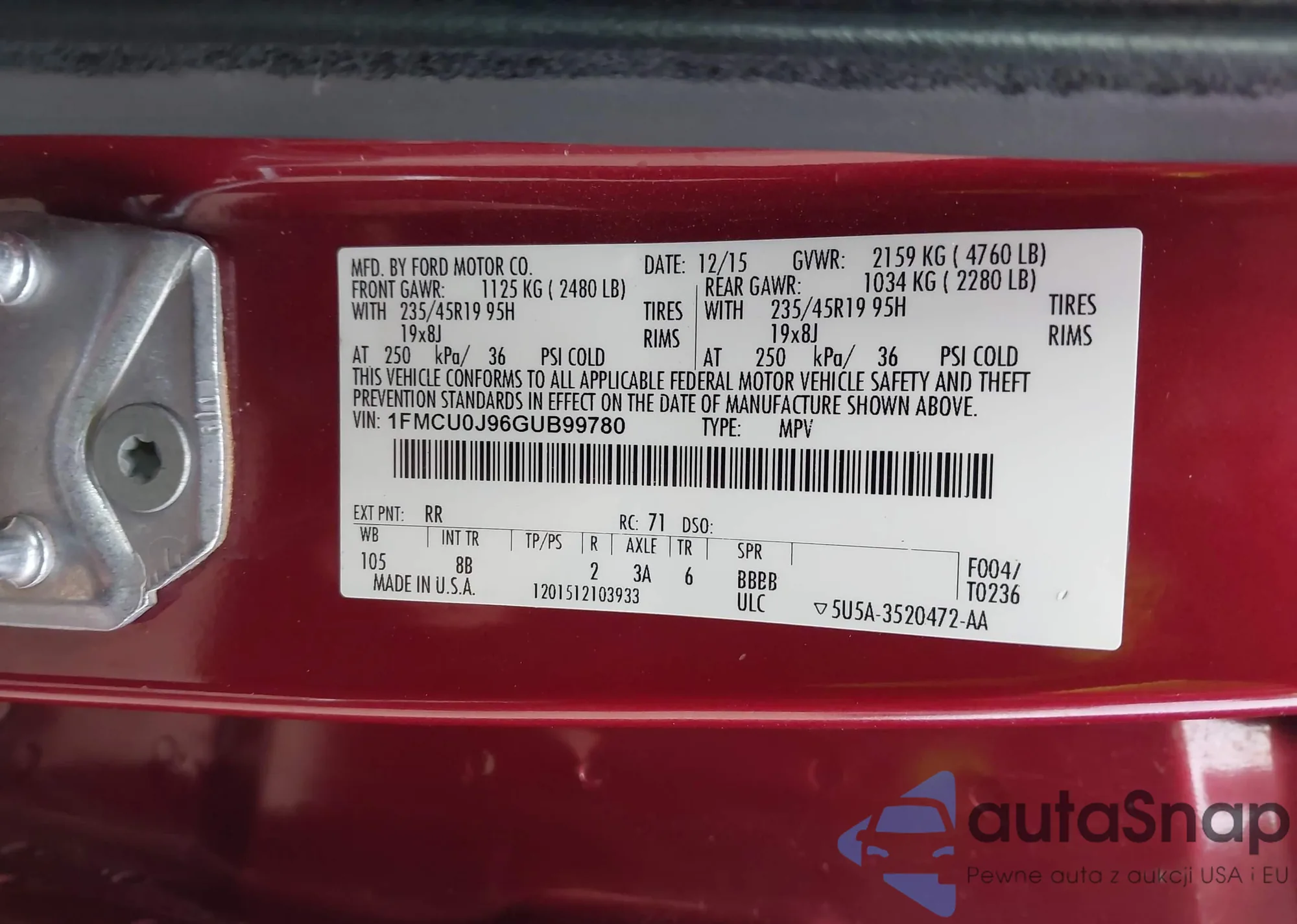 • VIN 1FMCU0J96GUB99780