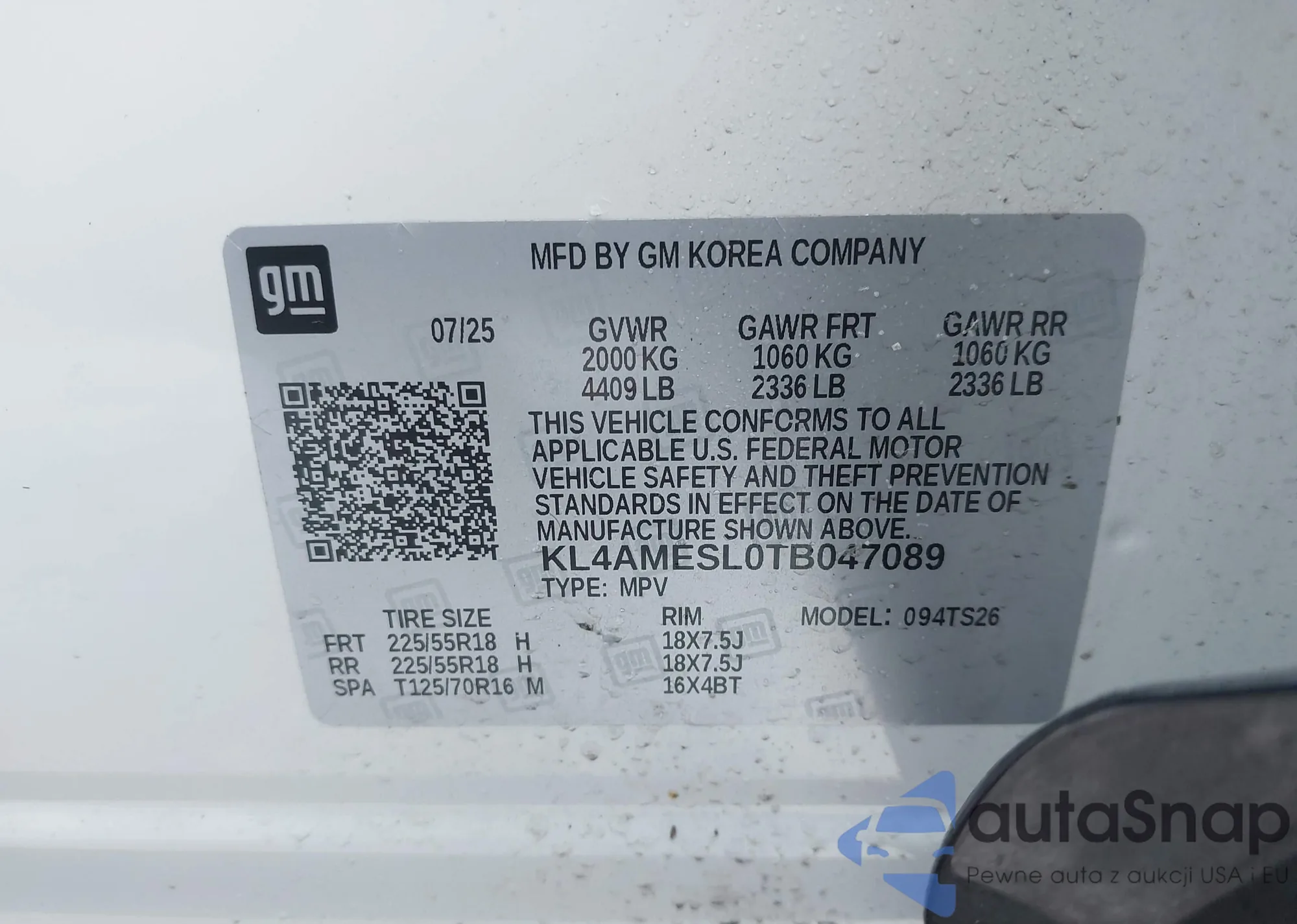 • VIN KL4AMESL0TB047089