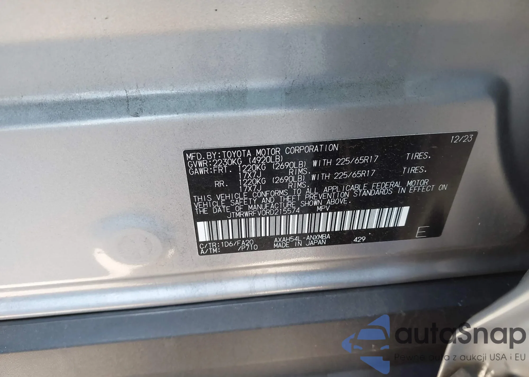 • VIN JTMRWRFV0RD215574
